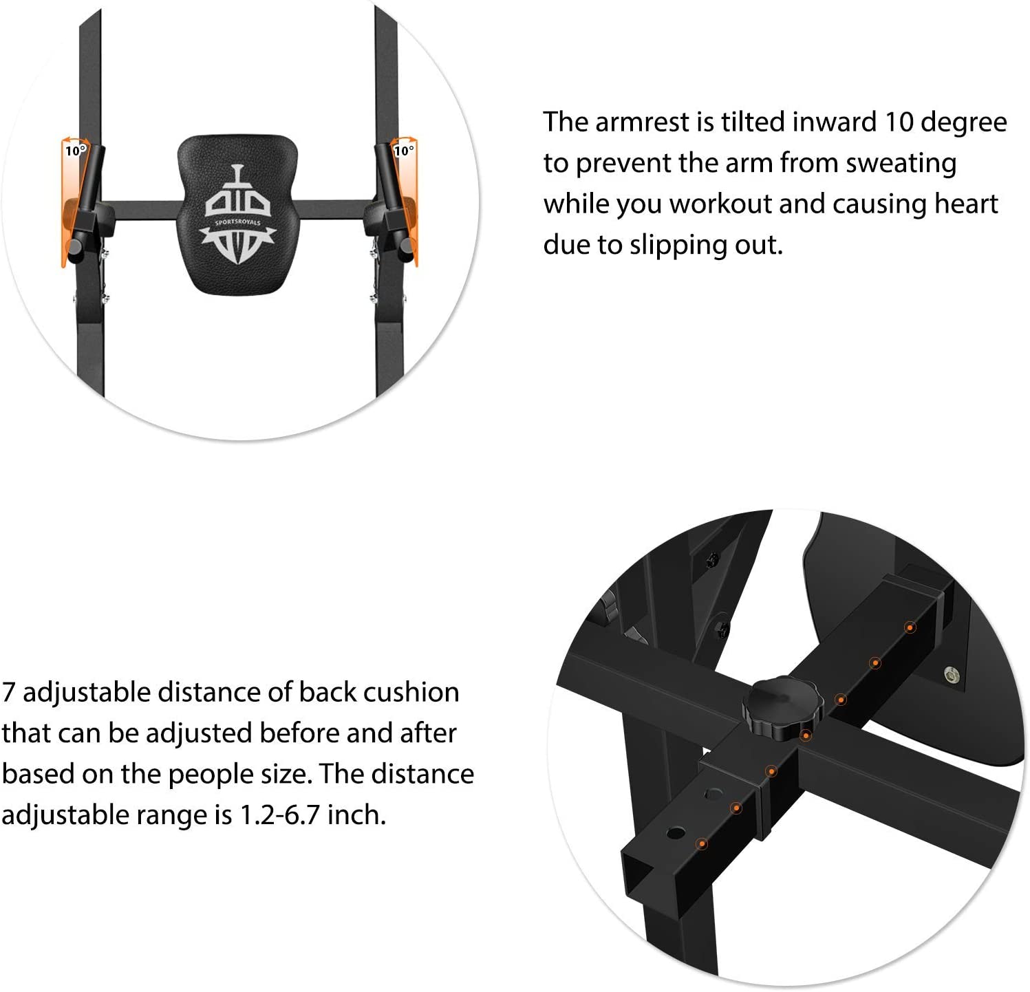 - 【Ergonomic Design】Humanized design with PU pads for elbow protection, and the armrest of this dip station is slightly inclined towards the inside 10 degree to prevent the elbow from slipping off.