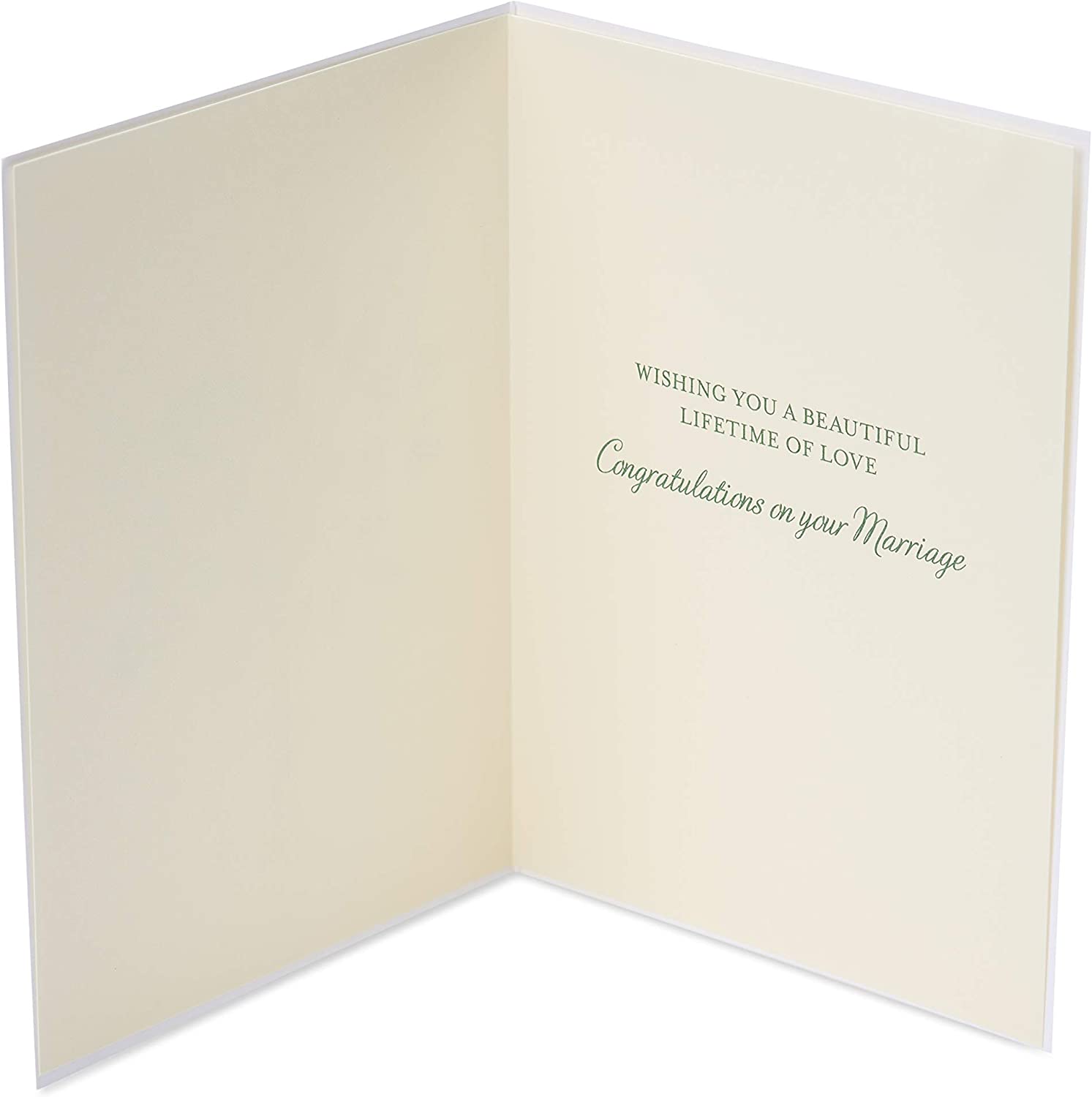 Share special wedding congratulations with a beautiful card by Papyrus! This elegant wedding design features a delicate, hand-painted floral bouquet in soft white and green tones with shimmering metallic foil accents against a crisp white background. The message inside is simple yet heartfelt, with enough space to write a personal message. Wish the happy couple all the best and let them know how much they mean to you with this elegant card only from Papyrus. Card includes matching envelope and gold foil seal.