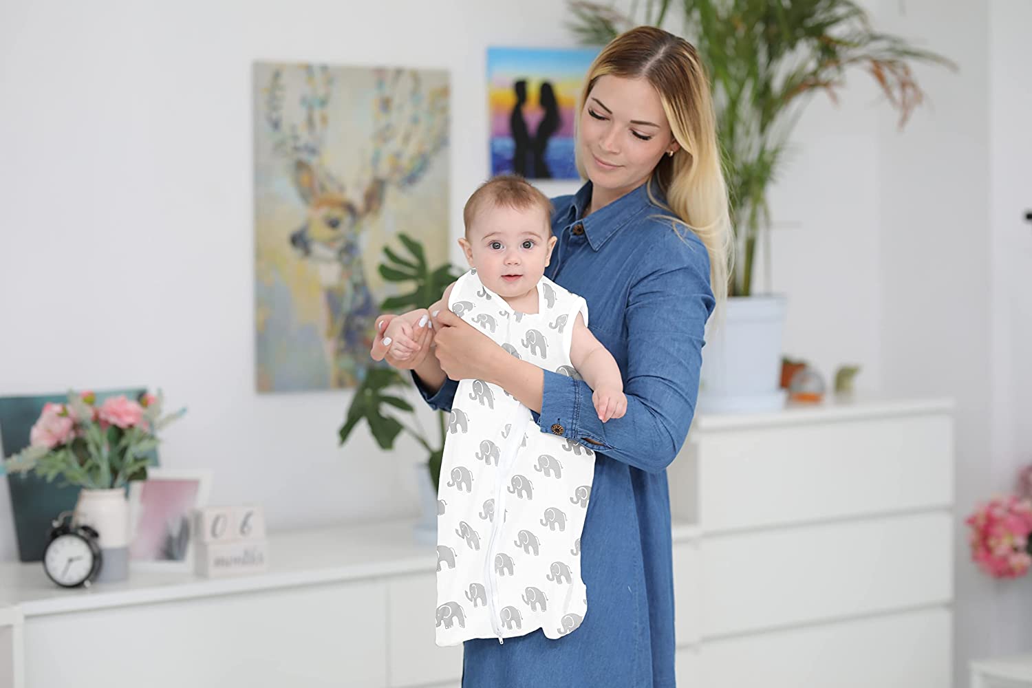 100% COTTON BABY WEARABLE BLANKET – made from premium quality, breathable cotton, our baby sleeping bag sacks provide ultimate comfort and security for your baby while they are sleeping, keeping them at the perfect temperature at all times. Soft and cozy, our breathable bag sleepers are perfect for providing a little nurturing when your baby is drifting off to sleep