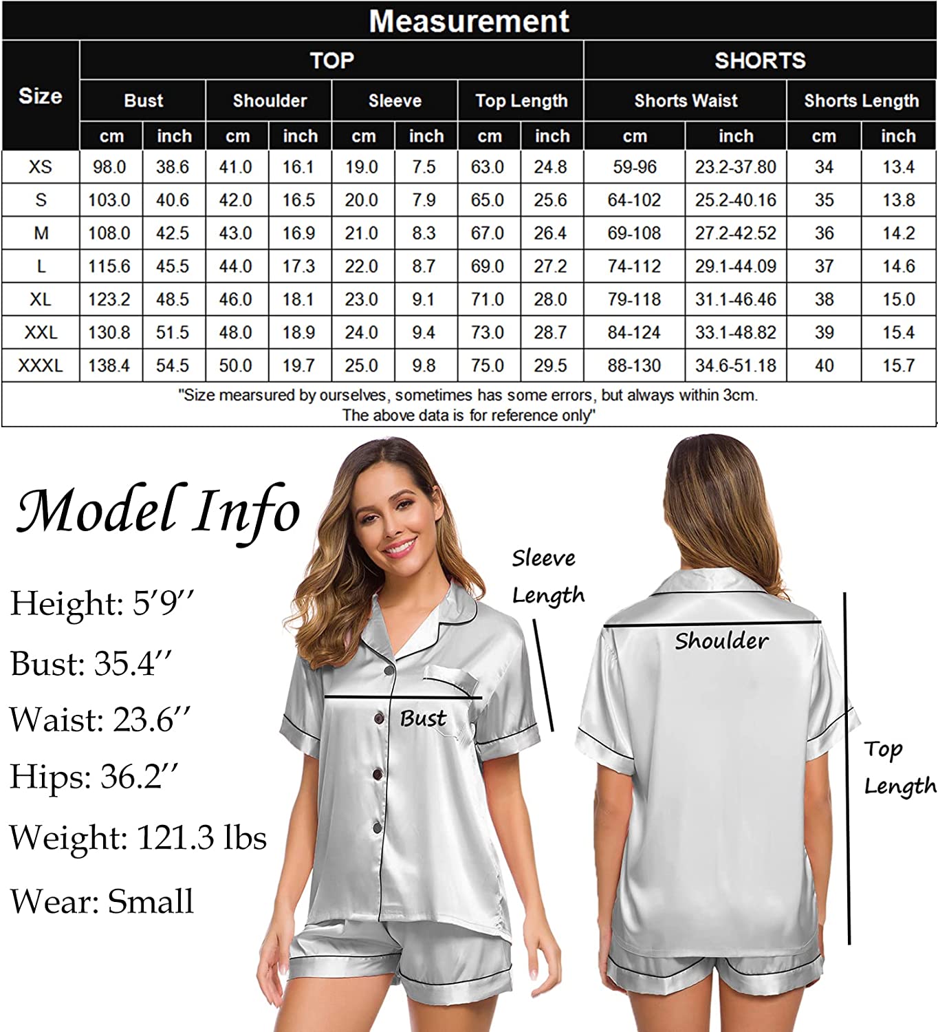 • Occasion:Women's Short Sleeve Silk Satin Pajamas Set, which is suitable for daily wearing and easy to match.Comfortable and suitable for lounging and sleeping,pajama party,girls day,bridal sleepwear,indoor, living room, bedroom, hotel, vocation, travel, and daily sleepwear.