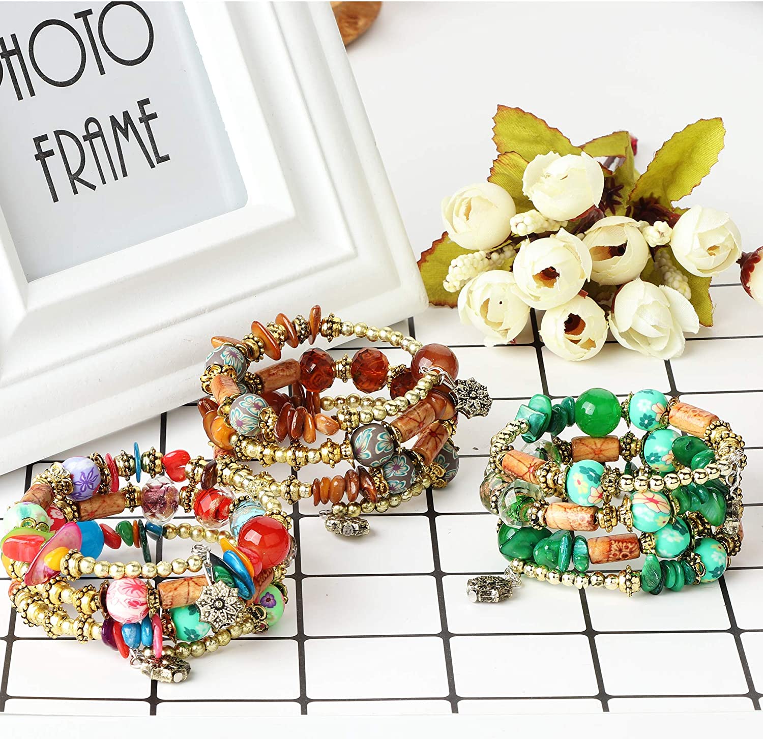 Affordable Vintage Bohemian Bracelet Set--6 sets handmade beaded bracelets come in a order, more choices for you. Bohemian beaded wrap clasp bangle have multi color can meet you everyday need