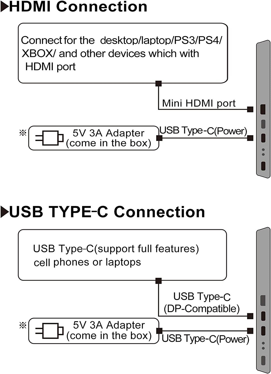 [Widely Application] Portable display with USB C, mini HDMI and USB port make it easy connection with Laptops, PCs, Phones, PS3/PS4, XBOX ONE or Switch and Mouse, Keyboard to play business presentations, games, videos, TV series, photos etc