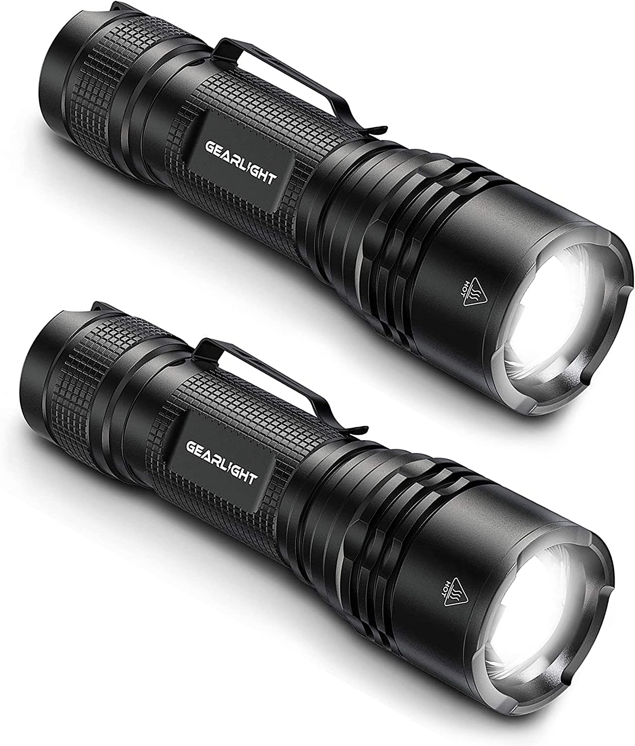 GearLight TAC LED Flashlight Pack - 2 Super Bright, Compact Tactical Flashlights with High Lumens for Outdoor Activity & Emergency Use - Gifts for Men & Women - Black