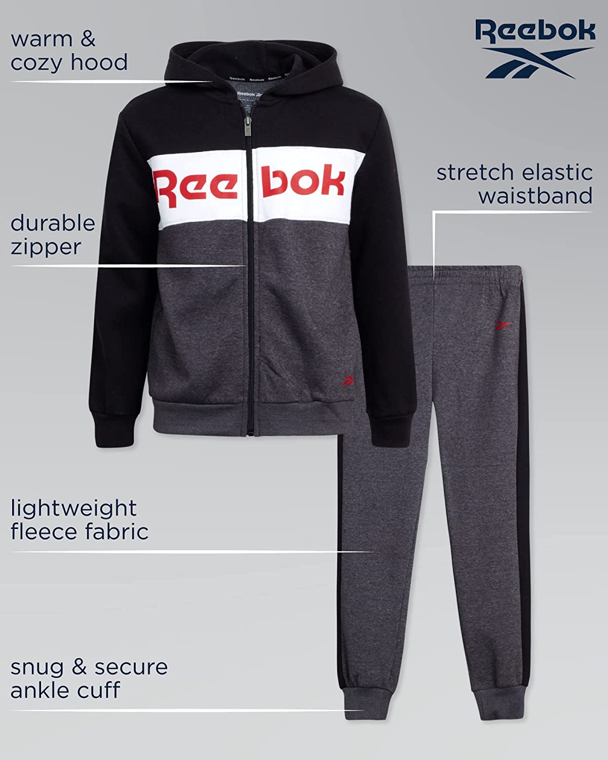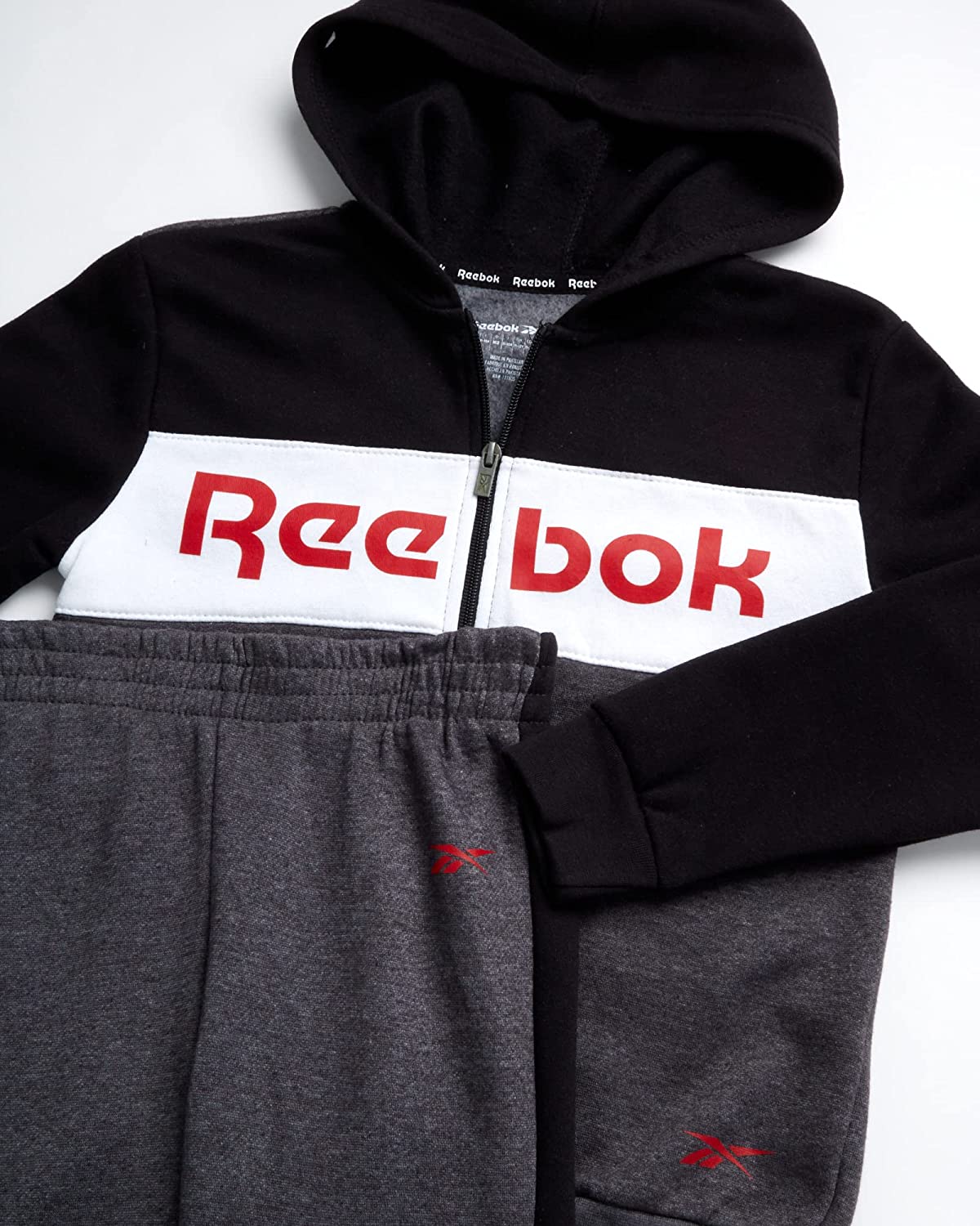 OFFICIALLY LICENSED REEBOK: Boys' Sweatsuit Set with a Full Zip Hoodie and Jogger Pants; Greatness doesn’t come from standing still, Living an active life enables people to be their best selves