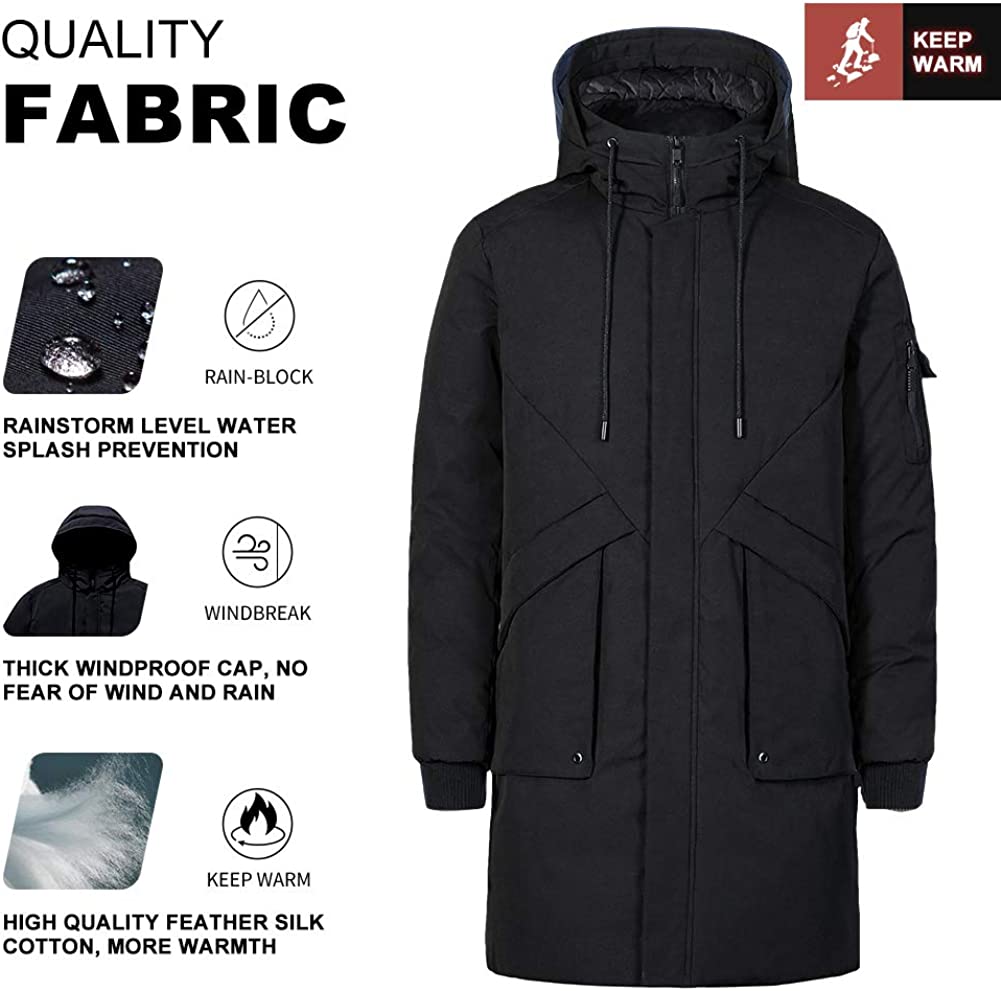 DESIGN 1: Water-Repellent shell fights bad rainy or misty weather, keep your body dry and warm; down cotton quilted filling provides perfect warmth and comfort in cold fall and winter; total 7 pockets, 2 deep pockets and 1 inner pocket with zipper to keep personal stuff safe, 2 side pockets to keep hands warm, 2 small pockets in the left arm make it more fashional; hooded design with Drawstring prevents cold air