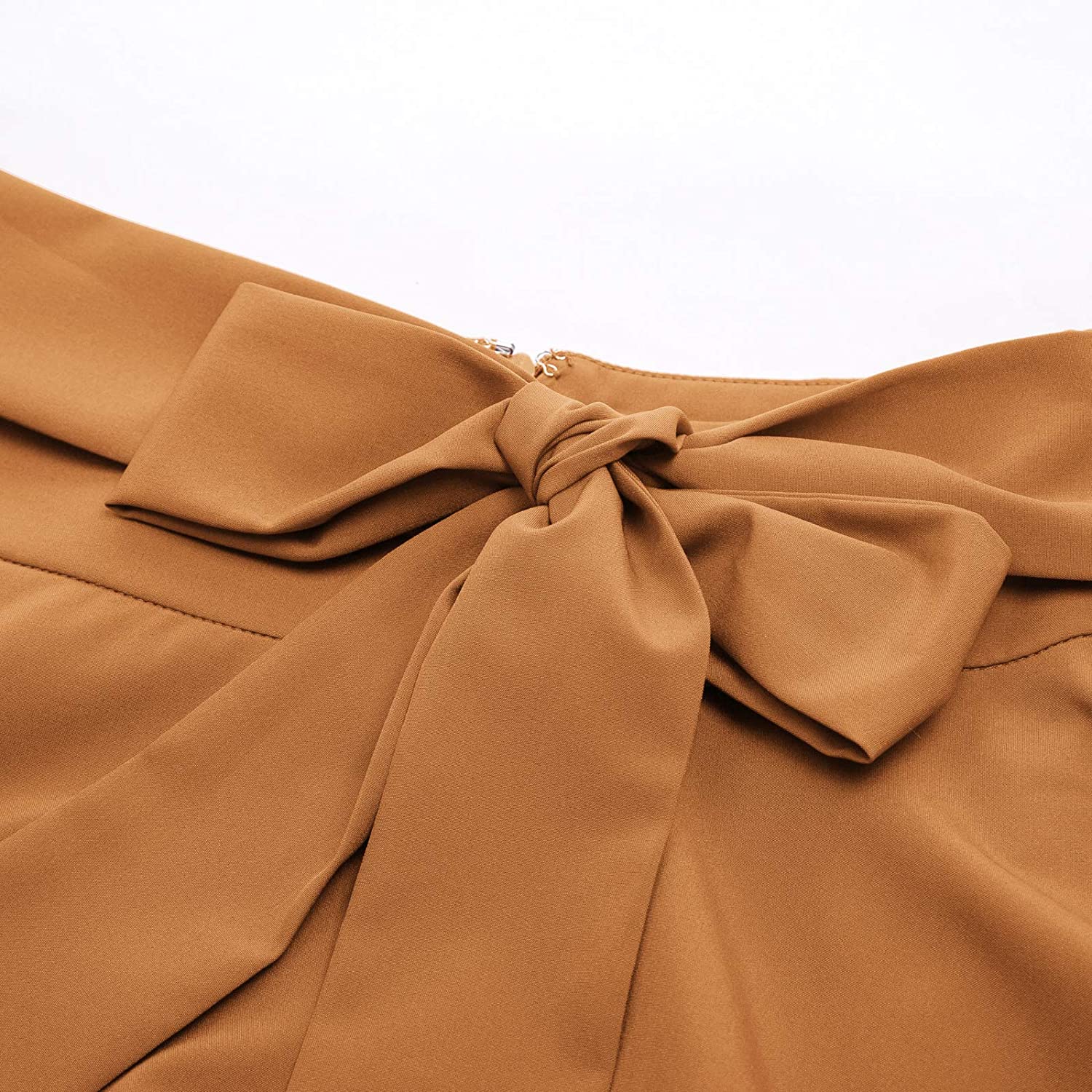 Skirt Feature: High waist skirts; Open side-seam pockets; Fixed belt adorns waist; Flared A-Line silhouette; Concealed zipper in the back