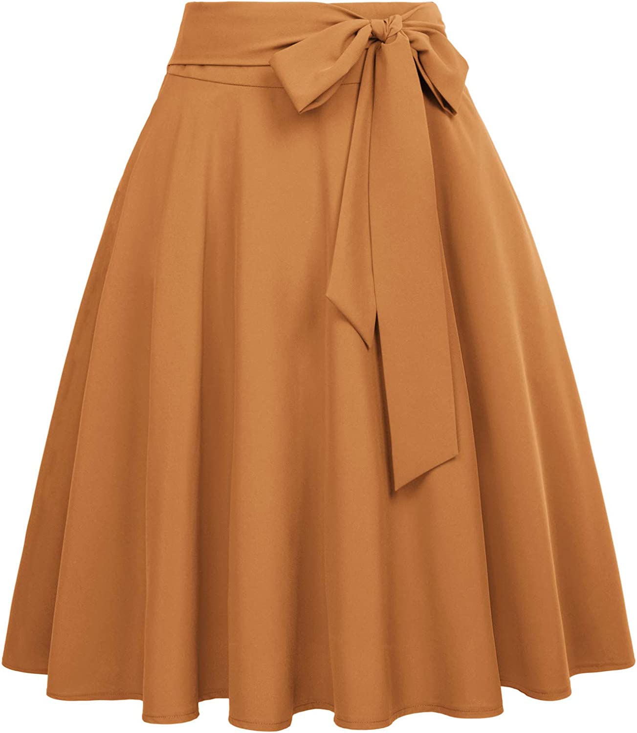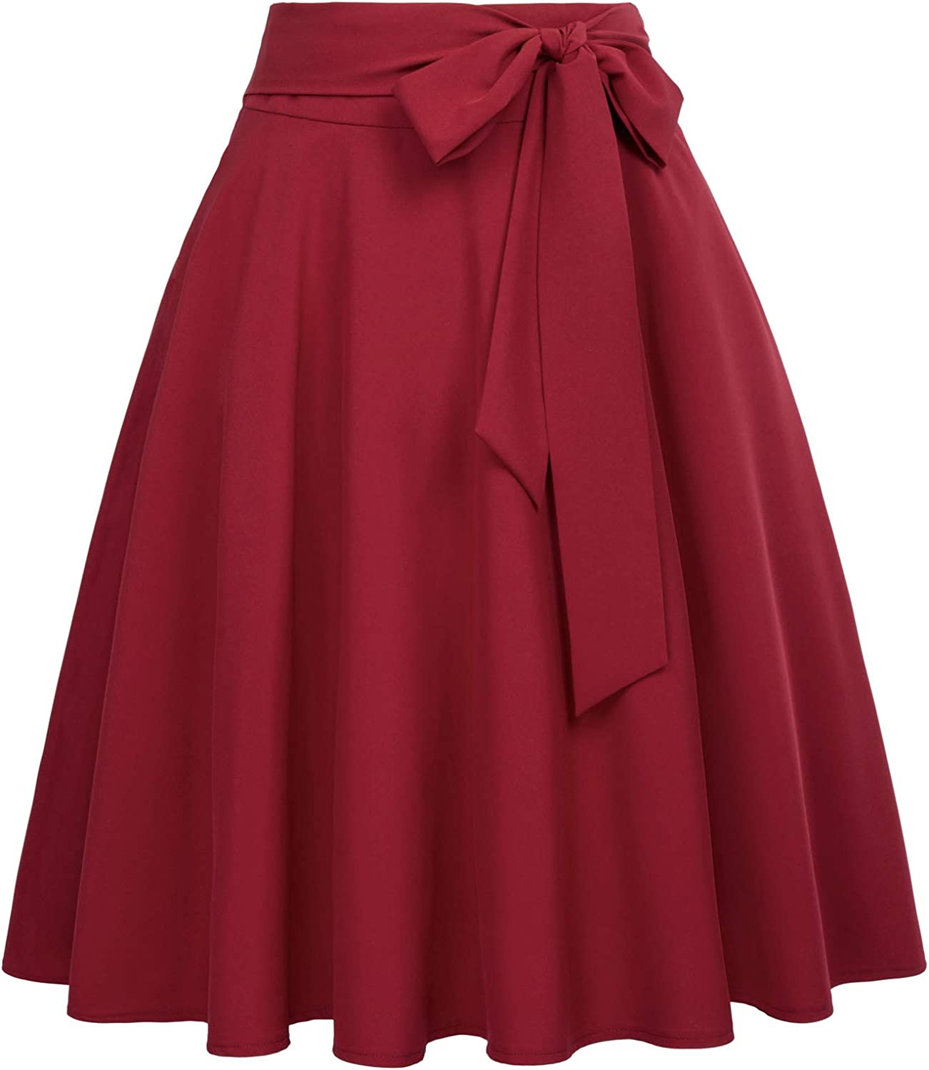 Belle Poque Women's High Waist A-Line Pockets Skirt Skater Flared Midi Skirt