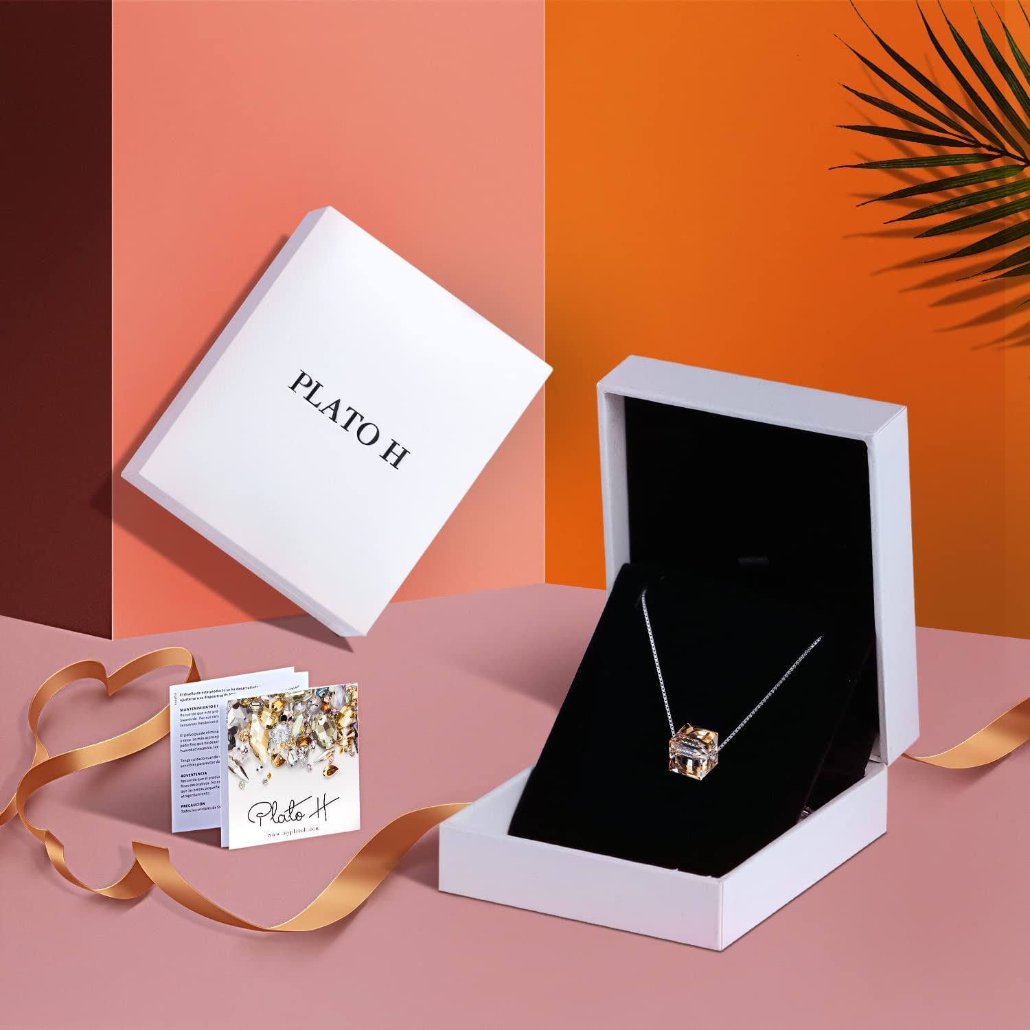 PLATO H S925 Sterling Silver Necklace Cubic Crystals Pendant Necklace for Women Allergy Free Unique Jewelry Gifts with Exquisited Gift Box Mothers Day Gifts