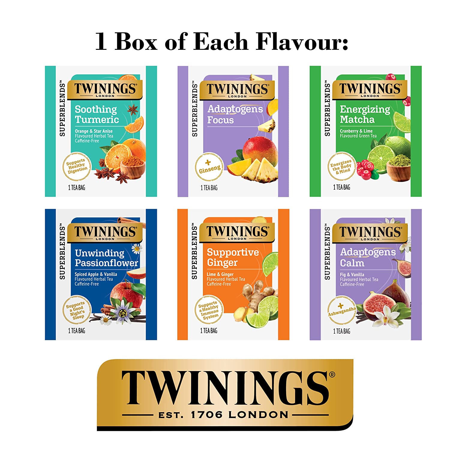 Twinings Daily Wellness Tea, Variety Pack, Flavored Herbal & Green Tea Bags, 18 Count (Pack of 6)