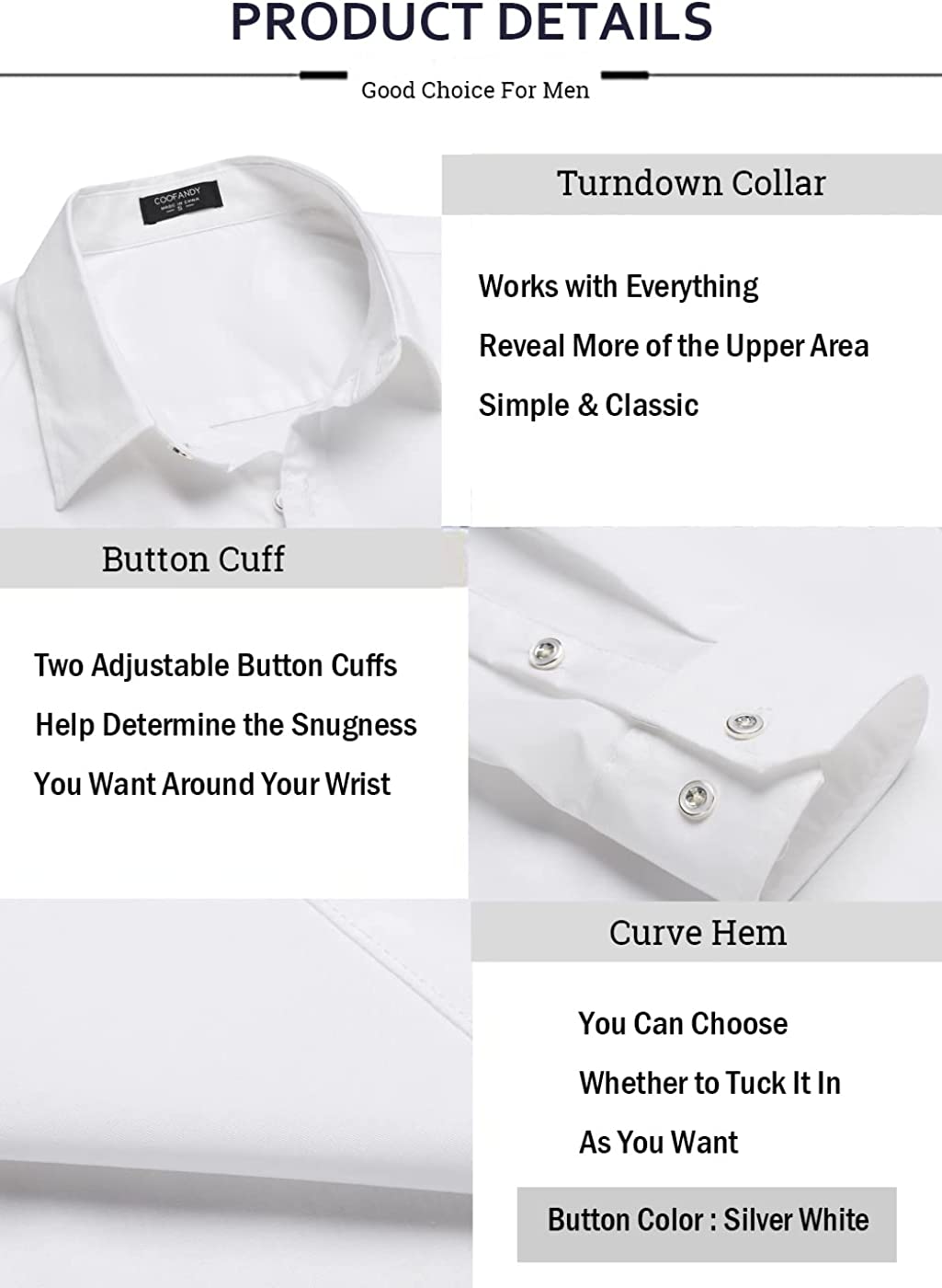 - 【Fashionable Design】Male dress shirts always come in a variety of types. Classic solid/plaid one never goes wrong. Slim fit stylish dress shirt with classic turndown collar, button up closure, long sleeve and metal contrast buttons makes you more handsome and attractive.