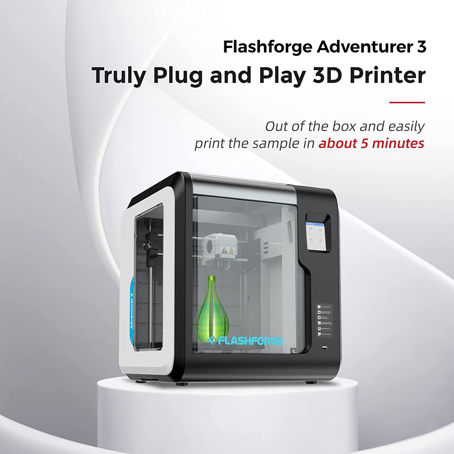 FLASHFORGE Adventurer 3 3D Printer Leveling-Free with Quick Removable Nozzle and Heating Bed, Built-in HD Camera, Wi-Fi Cloud Printing