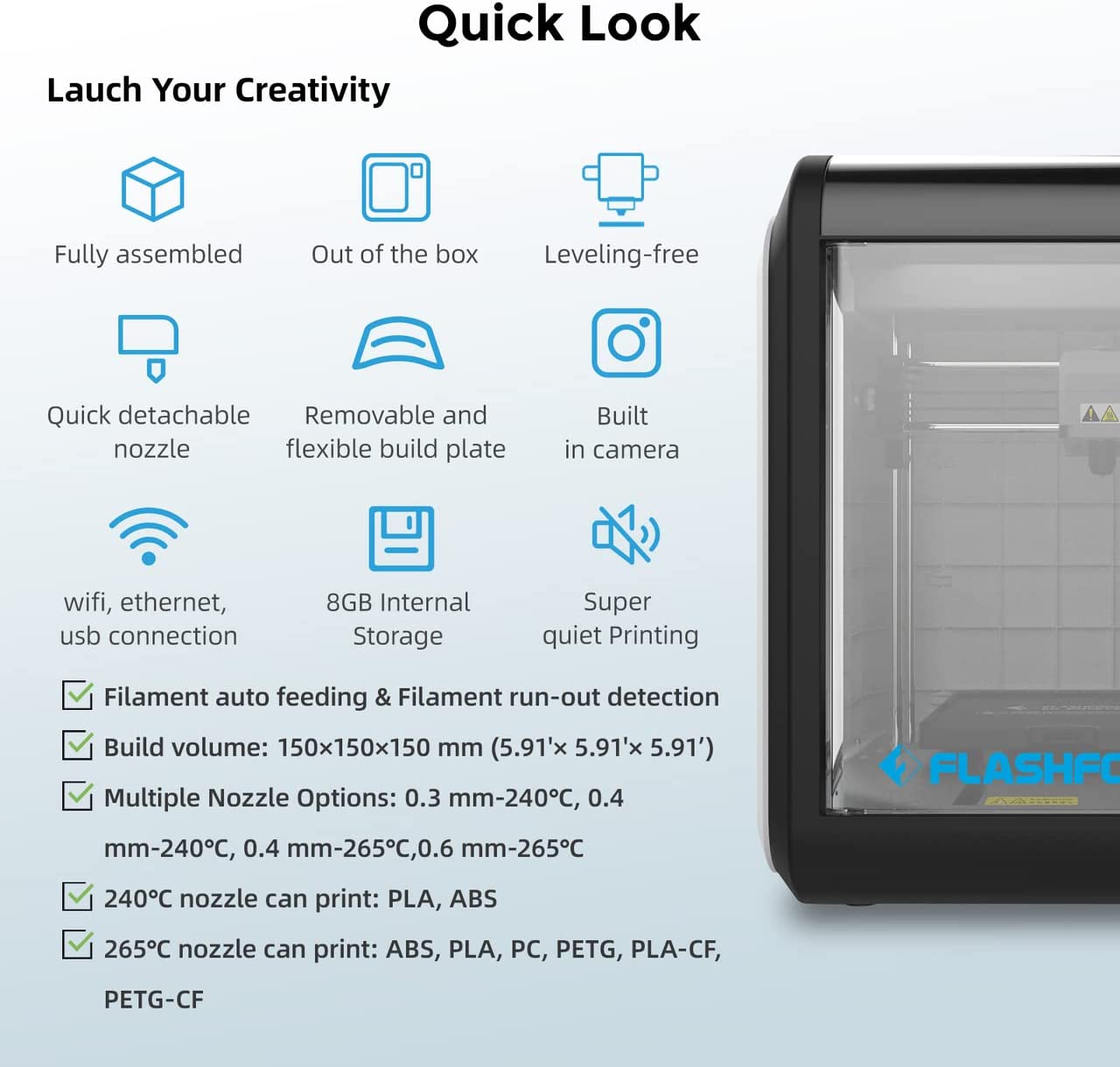 • 【What you get】– Flashforge 3d printer Adventurer 3,12 months warranty, lifetime technical assistance and 24 hours professional customer service.