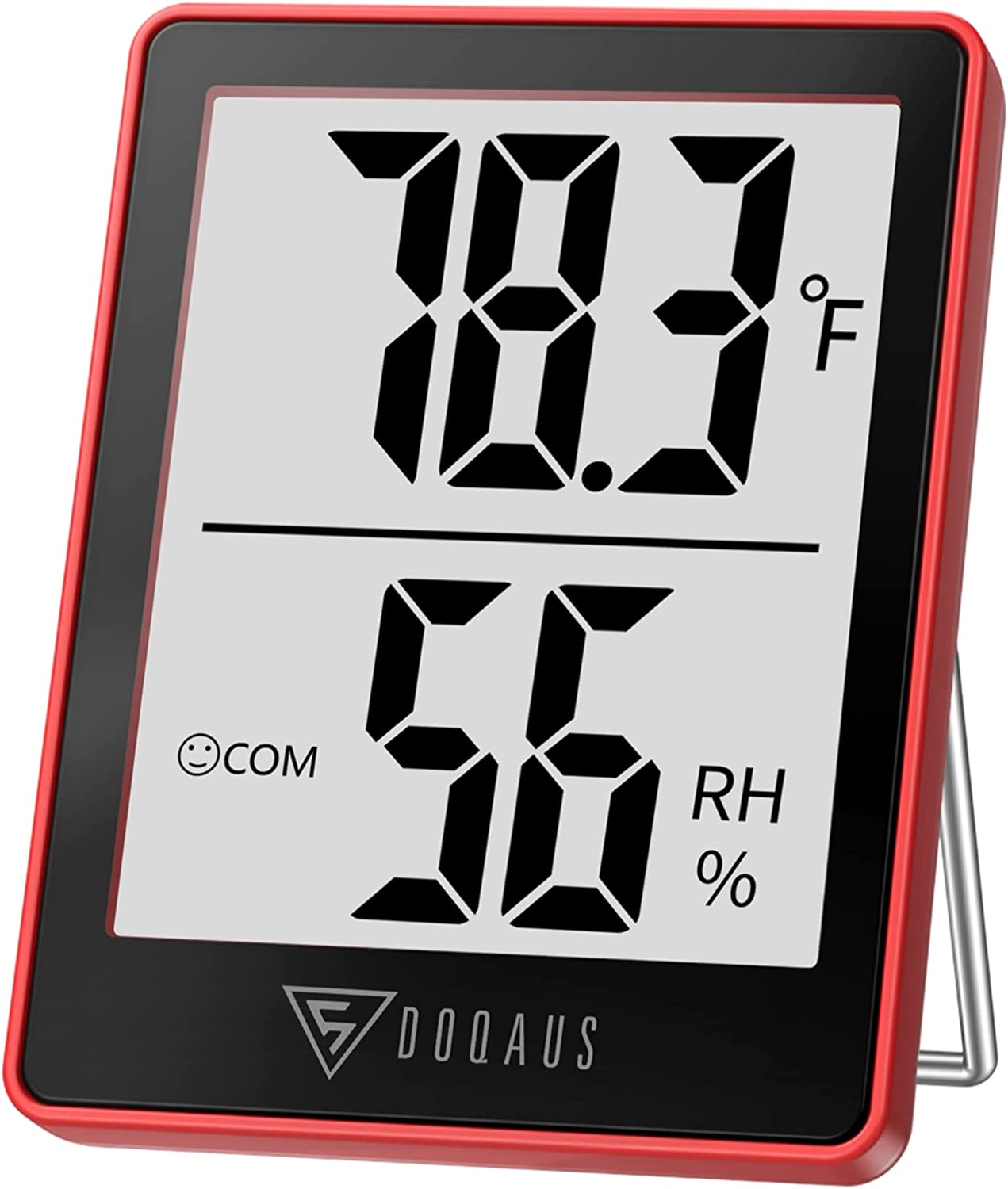 [Air Comfort Indicator]: DOQAUS thermometer for home features 3 different face icons to indicate DRY/COMFORT/WET air condition. Remind you to adjust your humidifier or dehumidifier accordingly and help you will always live in the most comfortable environment.