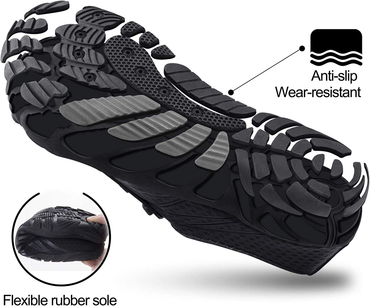 All-round Protection:Thick rubber soles and a toe cap keep your feet completely protected from sharp objects and provide great cushioning. The 3D non-slip treads provide exceptional grip even in slippery conditions. This makes it a great choice for outdoor sports.