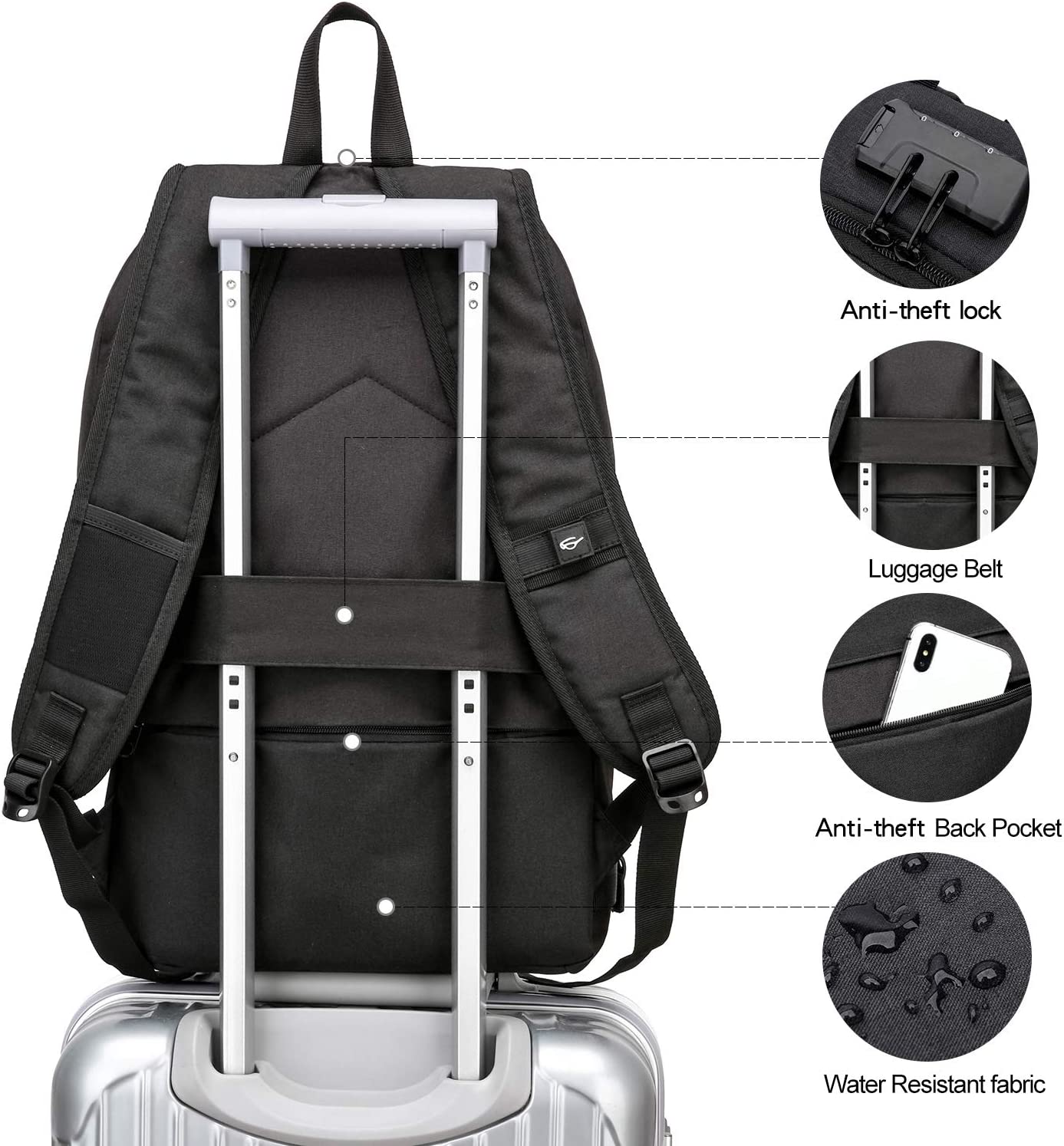 - ✈ SAFETY & PRACTICAL - This antitheft business travel computer bag With Fixed Password Lock and Durable Metal Zippers ,hidden anti-theft pocket on the back ,it is safe guaranteed for protecting your valuable items inside. No need to worry theft easily opening your backpack when you are travelling or lining up.A LUGGAGE STRAP allows backpack fit on luggage/suitcase, slide over the luggage upright handle tube for easier carrying.