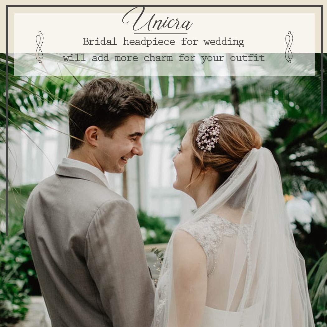Unicra Leaf Wedding Hair Vine Flower Bridal Hair Piece Crystal Rhinestone Long Headband for Women and Girls (Rose Gold)