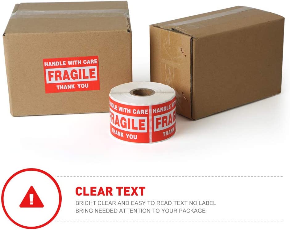 Premium 3" x 2" "Handle with Care Fragile Thank You" self-adhesive sticker. Our fragile sticker helps to reduce the risk of fragile items getting damaged during shipment. Bright and vivid color stickers work perfectly well for anyone who handles or ship the fragile package. High quality self-adhesive material can stick to any surfaces, like plastic, steel, pallet, carton box, etc. Designed for maximum efficiency while printing multiple labels at a time.