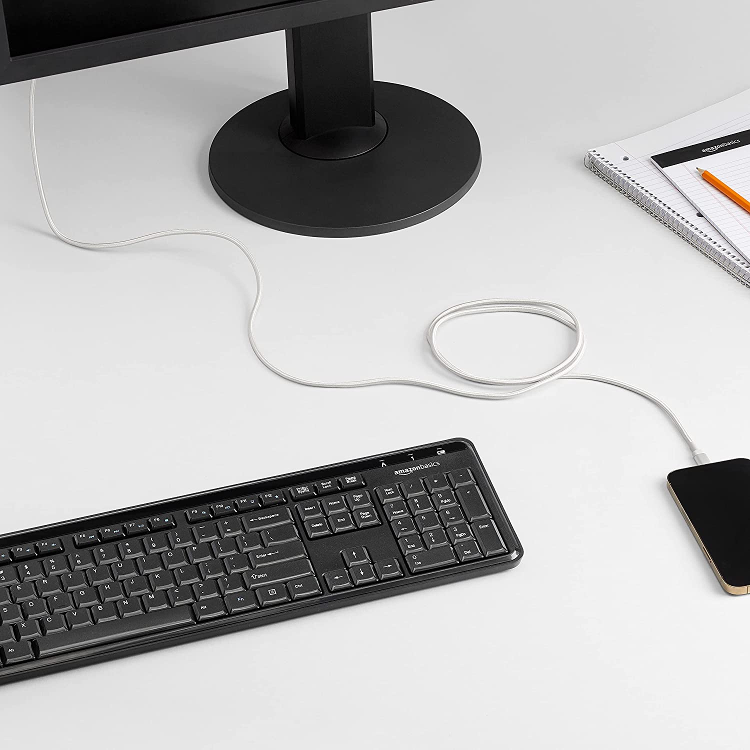 Amazon Basics Nylon USB-A to Lightning Cable Cord, MFi Certified Charger for Apple iPhone, iPad, Silver, 6-Ft