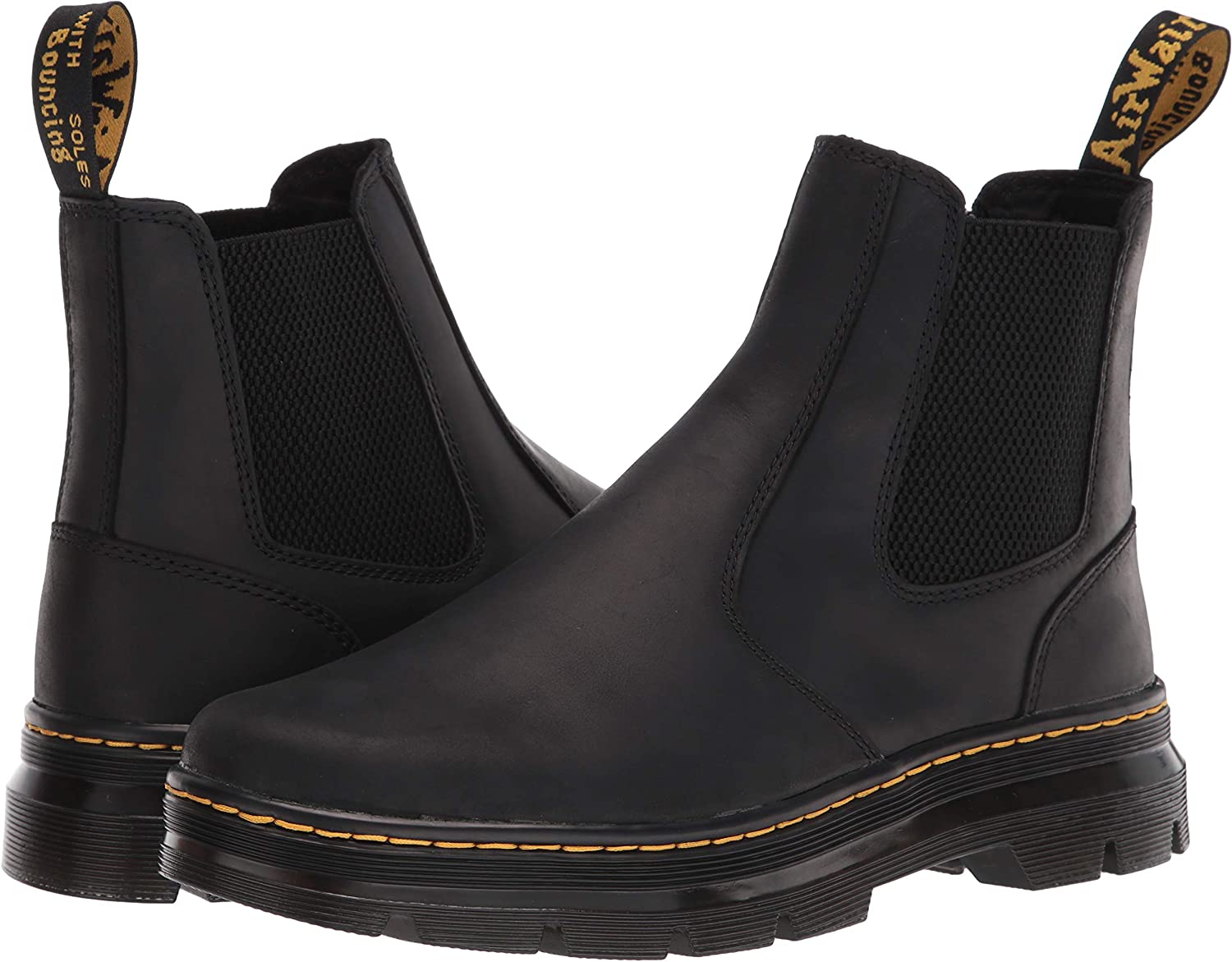 Retains classic Docs DNA, like grooved edges, yellow stitching and two scripted heel-loops.