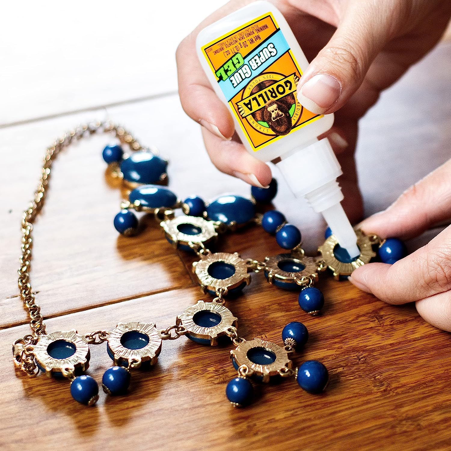 Gorilla Super Glue Gel is an easy-to-use, thicker and more controlled formula* great for multiple surfaces and vertical applications. Developed for long-lasting repairs in an instant, the clear glue dries in 10-45 seconds. This super glue gel is specially formulated to absorb drops and impacts. Super glue, also referred to as cyanoacrylate glue, or CA glue, works on a variety of materials, including plastic**, metal, stone, ceramic, paper, rubber and more. In addition to its high-performance formula, we've added an anti-clog cap with a metal pin inside to ensure an airtight seal for maximum reusability. It's Gorilla tough, every time.