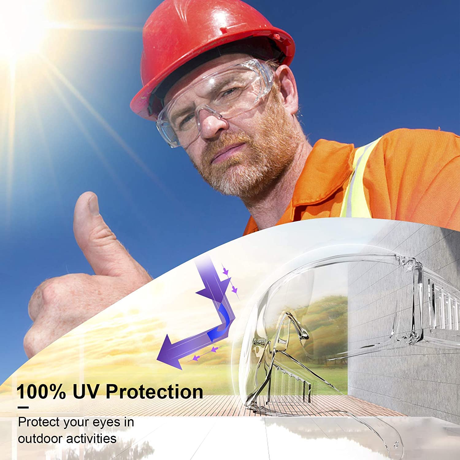 High-level Impact Resistance, Protect Your Eyes from Injury - Especially made of military-grade PC explosion-proof materials, Our safety glasses for work are with high impact resistance and durability ratings.safety goggles are some of the toughest pieces of protective eyewear available.The lenses are strong enough to meet military safety specifications, protecting your eyes from hazards as dangerous as flying shrapnel in extreme situations