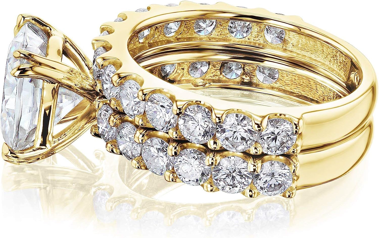 Women's Diamond and Solid 14k Gold Rings. Set of two - one engagement ring and one matching band.
