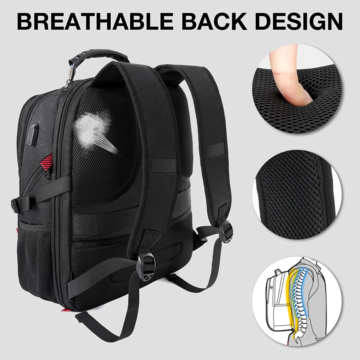 YOREPEK Travel Backpack, Extra Large 50L Laptop Backpacks for Men Women, Water Resistant College School Bookbag Airline Approved Business Work Bag with USB Charging Port Fits 17 Inch Computer, Black