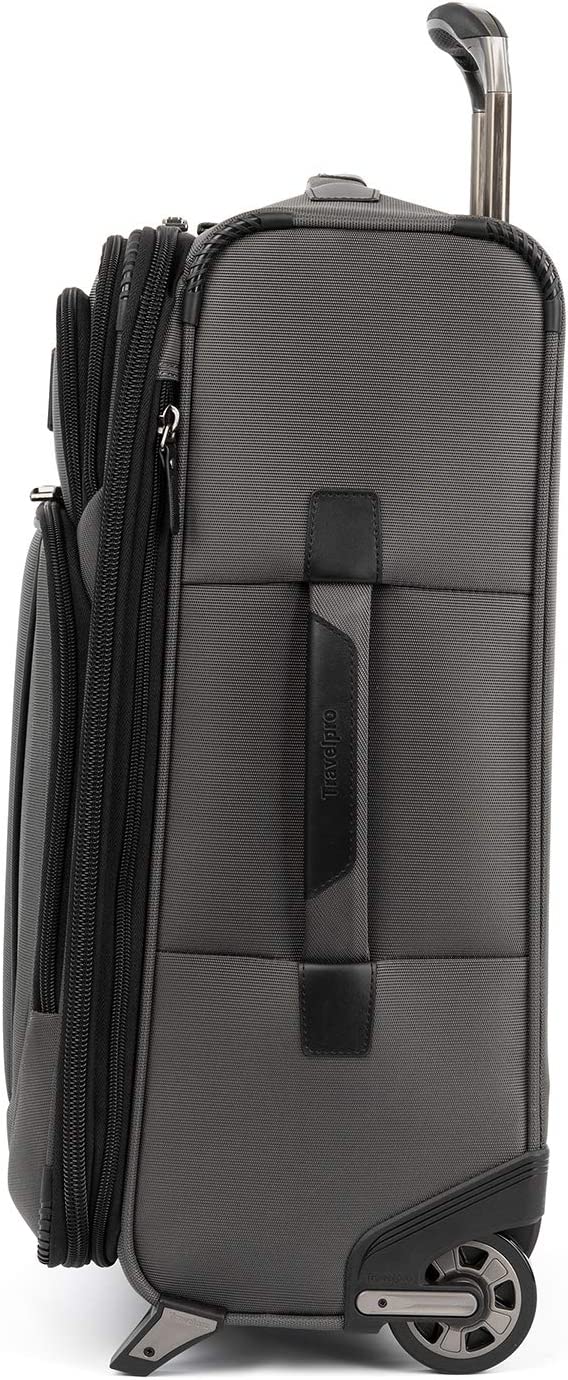 Pack to the max with luggage that is truly all your own. The max carry-on expandable Rollaboard is designed for total packing versatility and customizable with a variety of interchangeable Travelpro exclusive zip-in organizers. Included inside the lid is a removable zip-in garment organizer, ideal for storing folded shirts, dresses and jackets. Also available for purchase separately are four additional coordinating Travelpro exclusive zip-in organizers-a laundry organizer for bathing suits, workout clothes and other damp items, A packing cubes organizer for shorts, shirts and accessories, A suitor organizer to keep hanging clothes wrinkle-free and an all-in-one organizer for wet and dry storage (each sold separately). created for domestic travel on larger aircraft, this bag is sized to max out the sizer bin and fit In the overhead bins of most major yours. Airlines. It also features a tip-resistant zippered expansion to increase packing space up to two inches, but be careful not to overpack the exterior pockets and risk making it too big for the sizer bin. Enjoy total convenience with a built-in USB port and dedicated exterior power bank pocket, exterior padded laptop pocket and removable TSA-compliant toiletries bag that stores perfectly in a same-sized exterior pocket. Two ultra-strong, oversized, high-performance ball bearing wheels roll smoothly over any terrain led by a four-stop, height-adjustable PowerScope handle, while the add-a-bag strap and metal j-hook let you carry additional bags hands-free. Built for professional-grade dependability With robust corner armor, skid guards and heavy-duty wheel housings, crew versapack is the civilian version of the luggage flight crews use, tested to meet the same superior quality and durability standards. This Rollaboard is further backed by the comprehensive built for a lifetime limited warranty with our trusted companion promise.