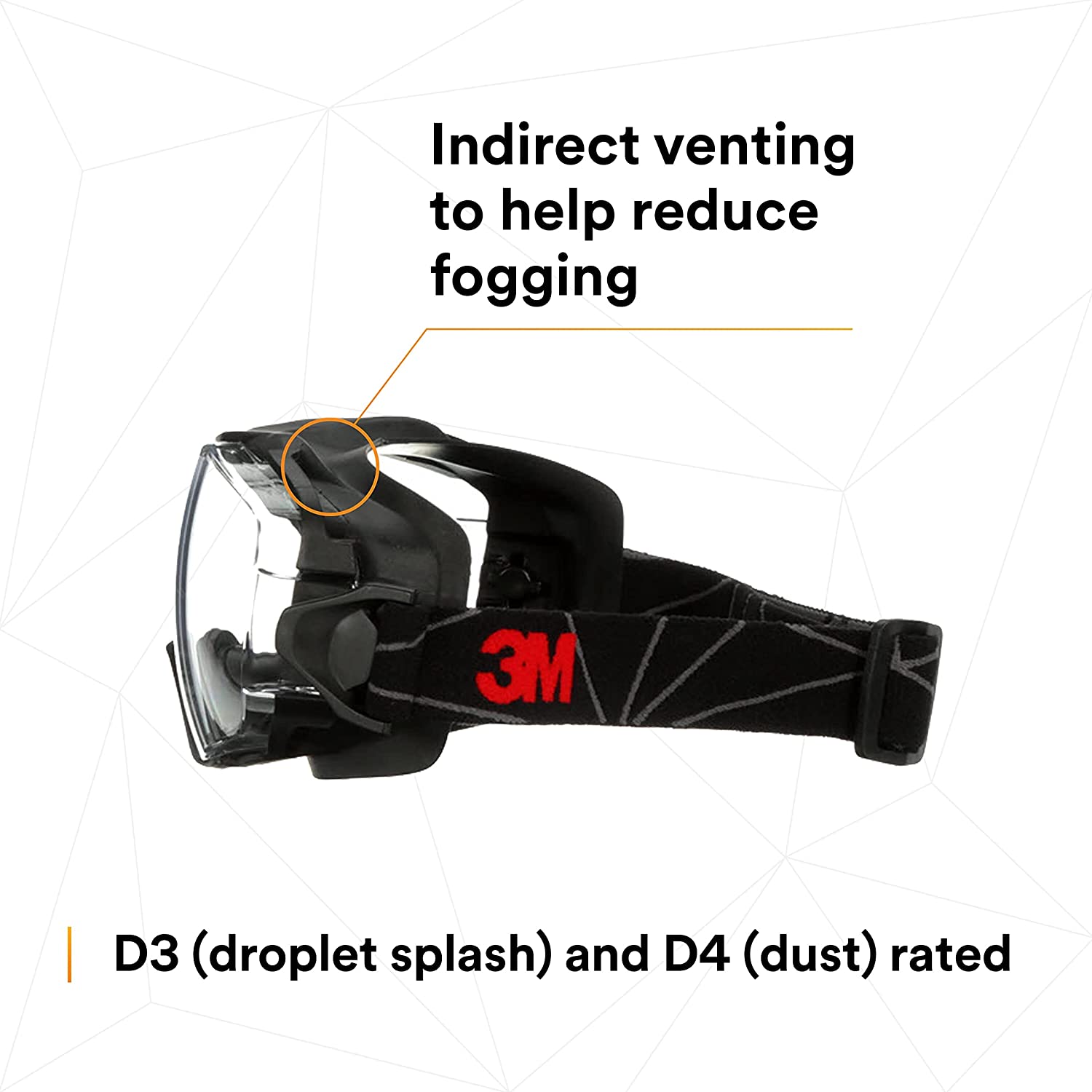 The 3M Goggle Gear 6000 Series is a larger-profile goggle design that features models with 3M Scotch Gard Anti-Fog Coating, or Traditional Anti-Fog & Anti-Scratch coating. All models come with indirect venting to help reduce fogging. Both adjustable nylon fiber cloth strap, or neoprene strap, are available within the 3M Goggle Gear 6000 Series.