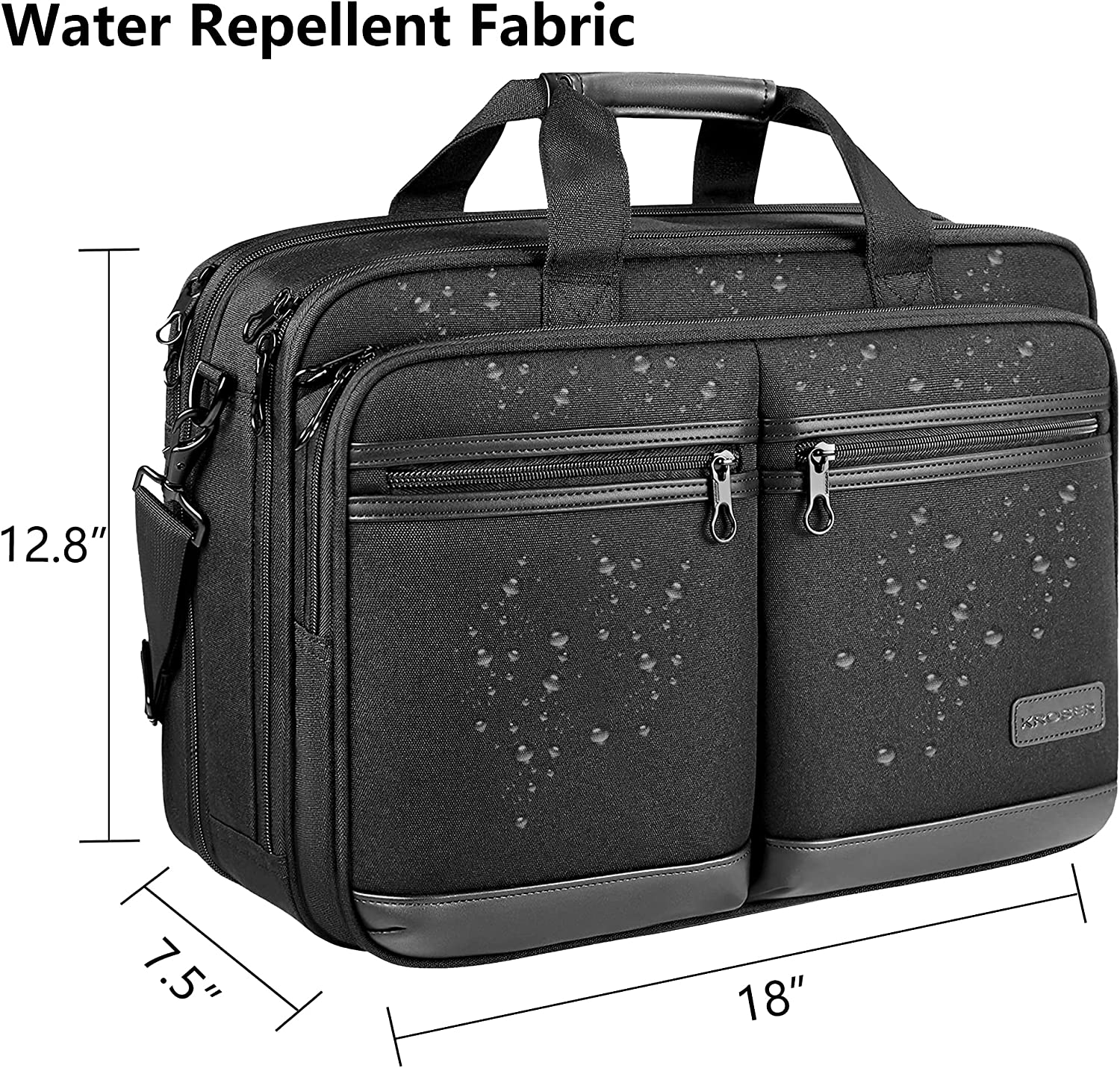 - This premium laptop briefcase is made of high quality environment-friendly fabric which is durable and water-repellent. Dimensions: 18”x12.8”x7.5”; Weight: 2.88 LBS.
