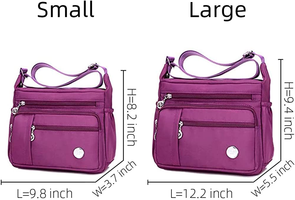 Exterior Dimensions: Small:9.8x 3.7x 8.2 inch (L x W x H).Large:12.2x 5.5 x 9.4 inch(L x W x H).Both sizes come with an adjustable strap.Two sizes of bags meet your different needs.
