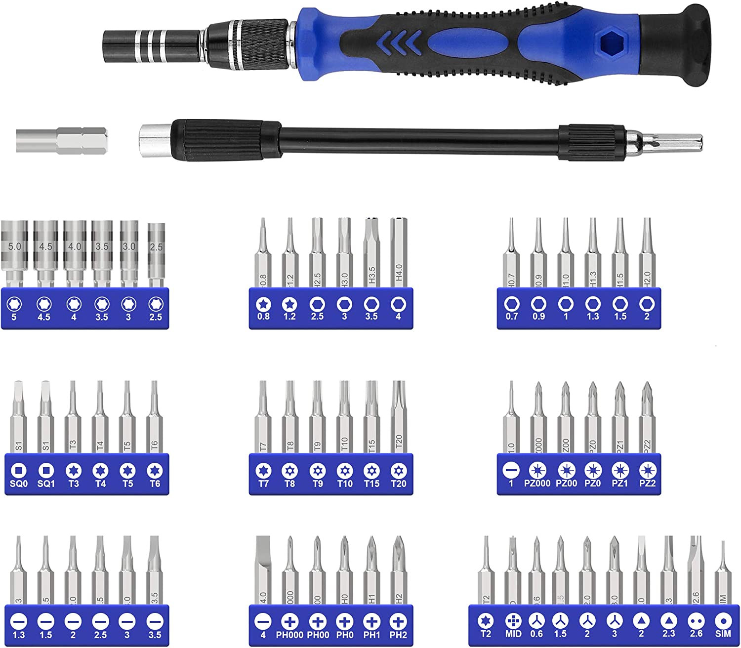 Precision Screwdriver Kit, XOOL 62 in 1 Electronics Repair Tool Kit, Magnetic Driver Kit with Flexible Shaft, Extension Rod for Mobile Phone, Smartphone, Game Console, PC, Tablet