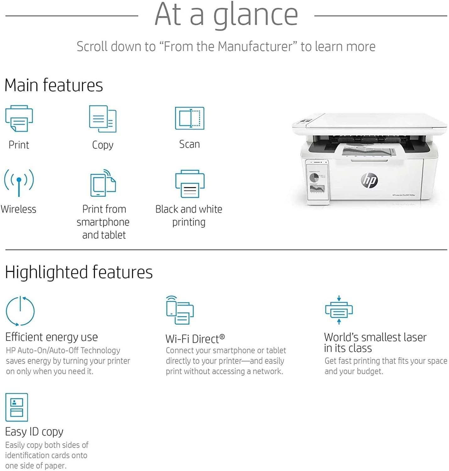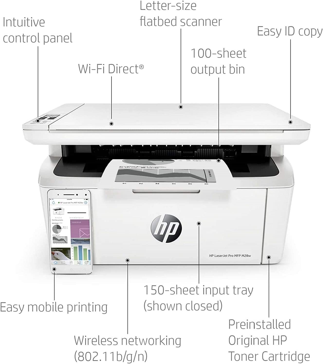 HP Laserjet Pro M28w Multi-Function Wireless Monochrome Printer, Copy & Scan with Smart App, W2G55A (Renewed)