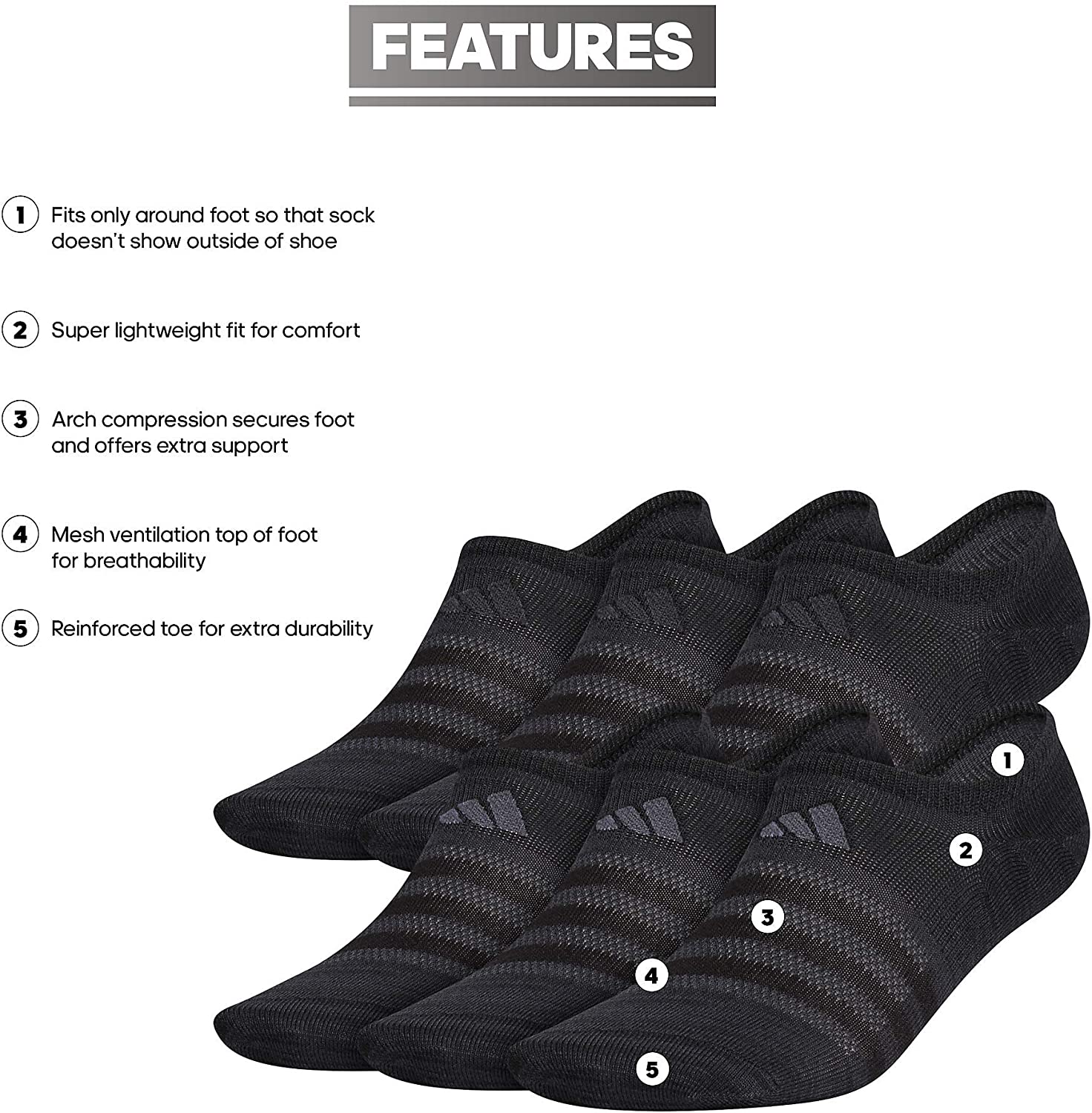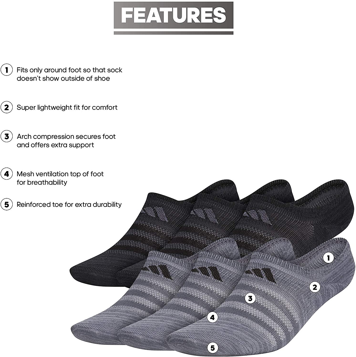 adidas Mens Superlite Super No Show Socks (6-pair)