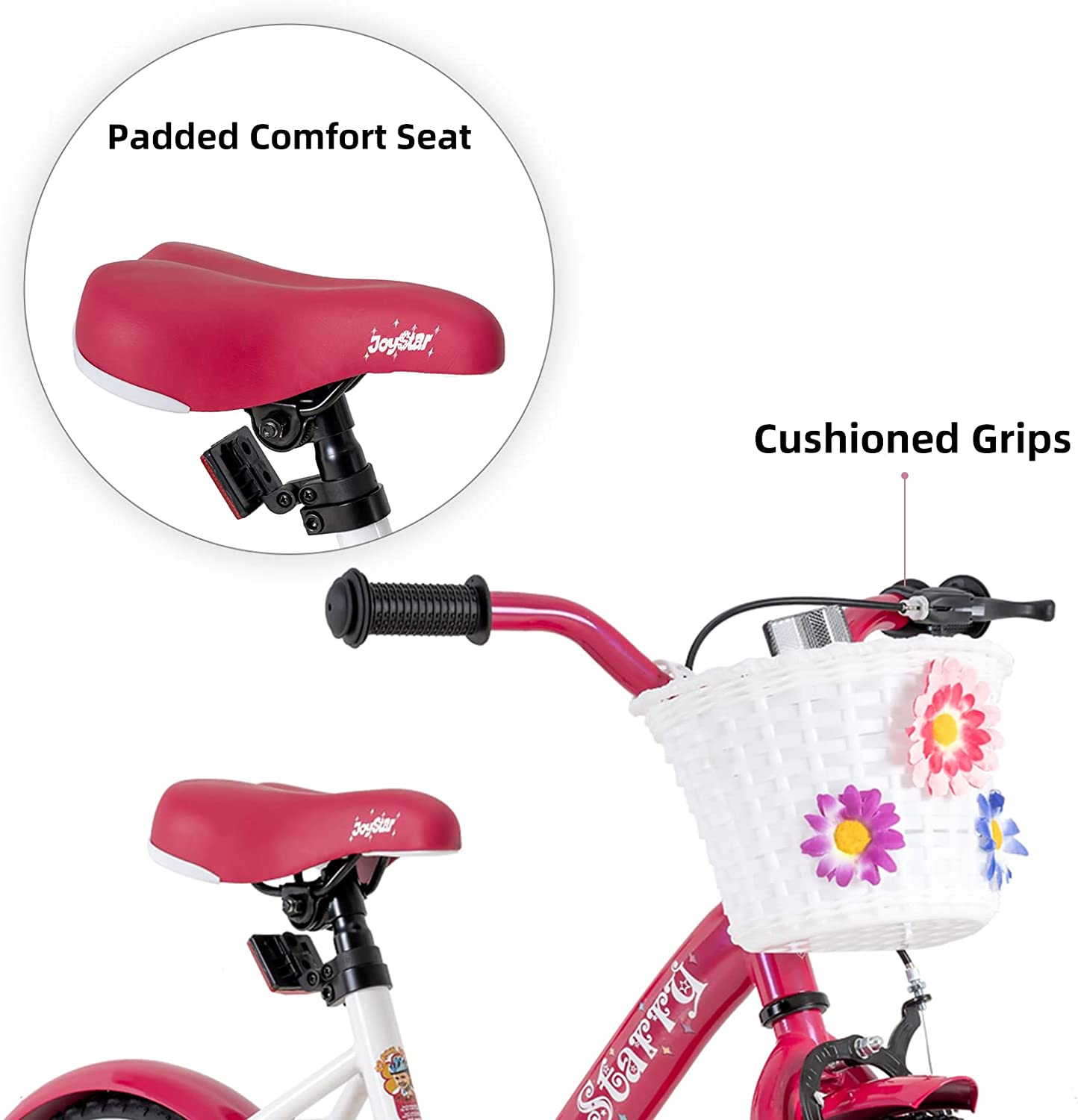 - ✔Designed for Kids - JOYSTAR Starry 14inch Girls bikes are designed for children ages 3-5 years old or 35-47inches tall. The Starry features a durable and light steel frame, easy-to-steer handlebars, and an adjustable seat. The Starry is perfect for riding to the park or riding on the sidewalk around the neighborhood.