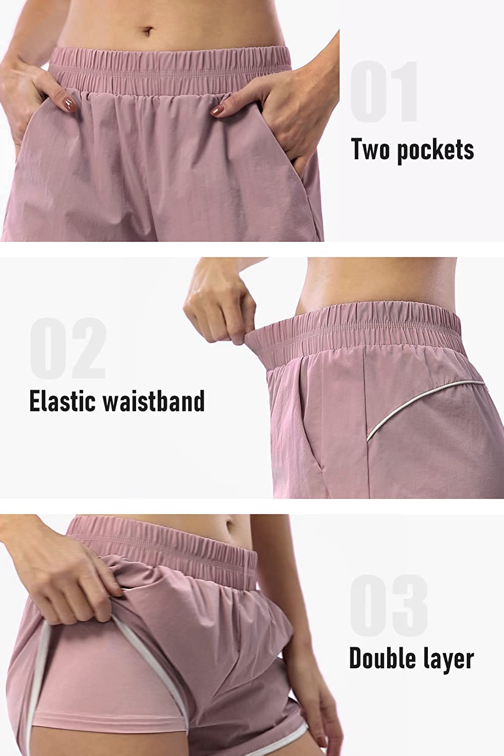 BLEVONH Women Elastic Waist Double Layer Casual Running Shorts with Side Pockets