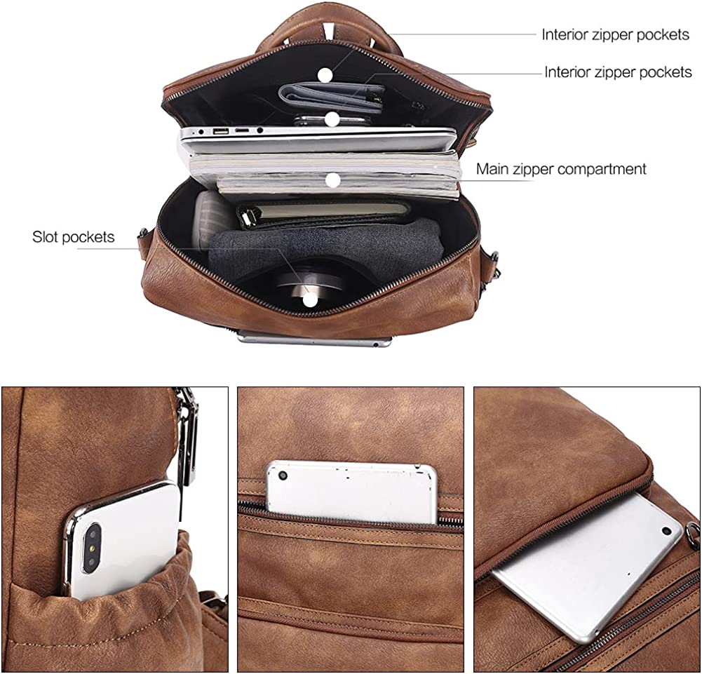 Convertible Carrying Ways: The bag can be used as shoulder bag or backpack. 1 back zipper pocket for security and privacy. Top double U external zippers are designed for opening in two directions to have a quick access to your items.