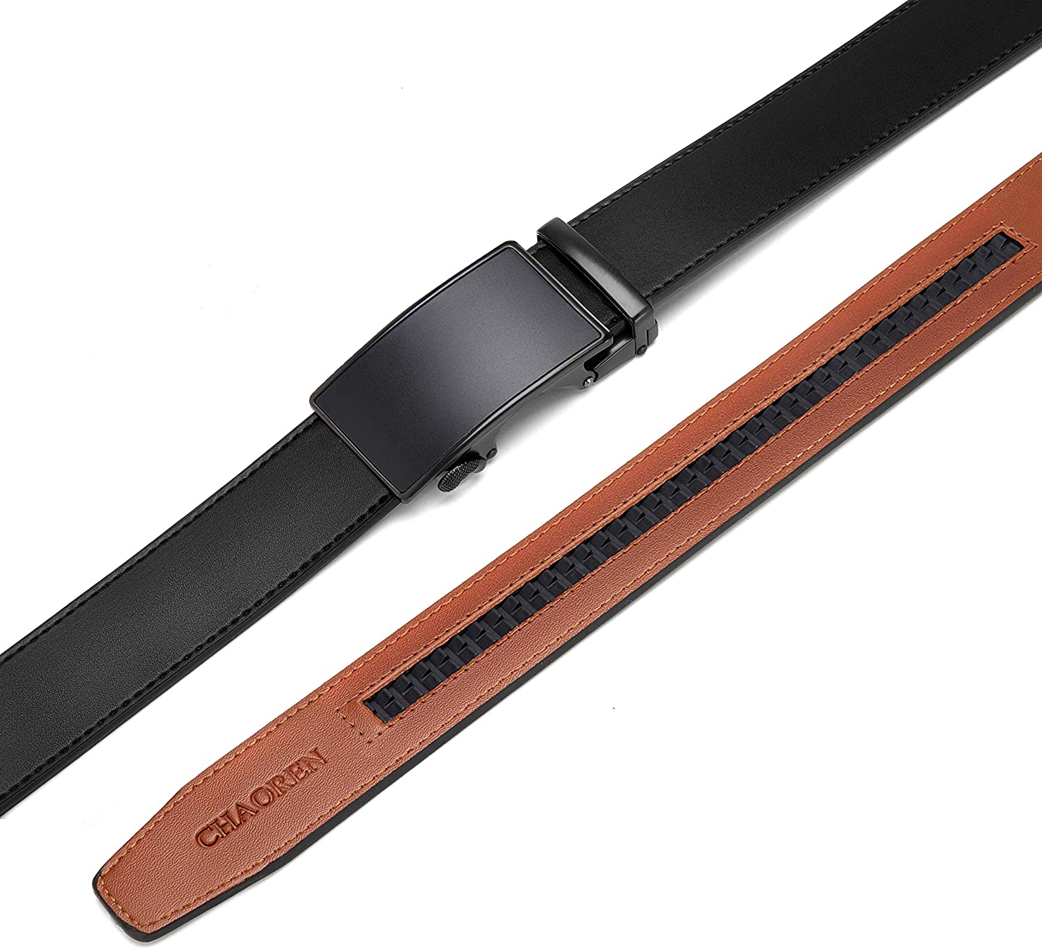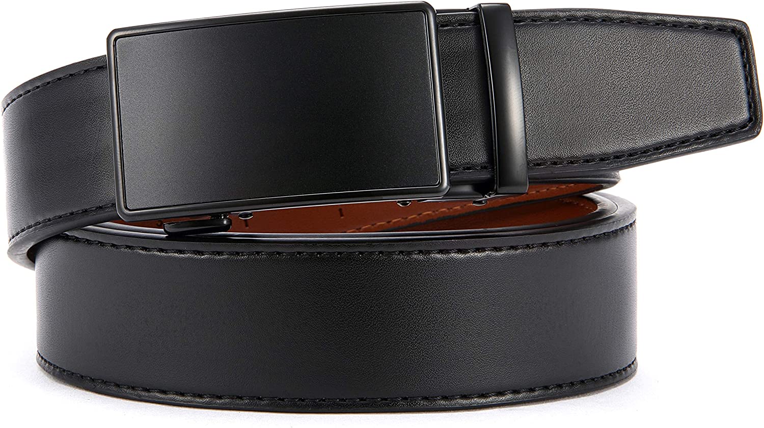 - EASY TO USE - Slide the leather belts for men into the buckle, and click on the buckle to lock it automatically. Gently push the lever on the side of the automatic buckle, and pull the casual belt to release. Simple, smooth, and sleek!