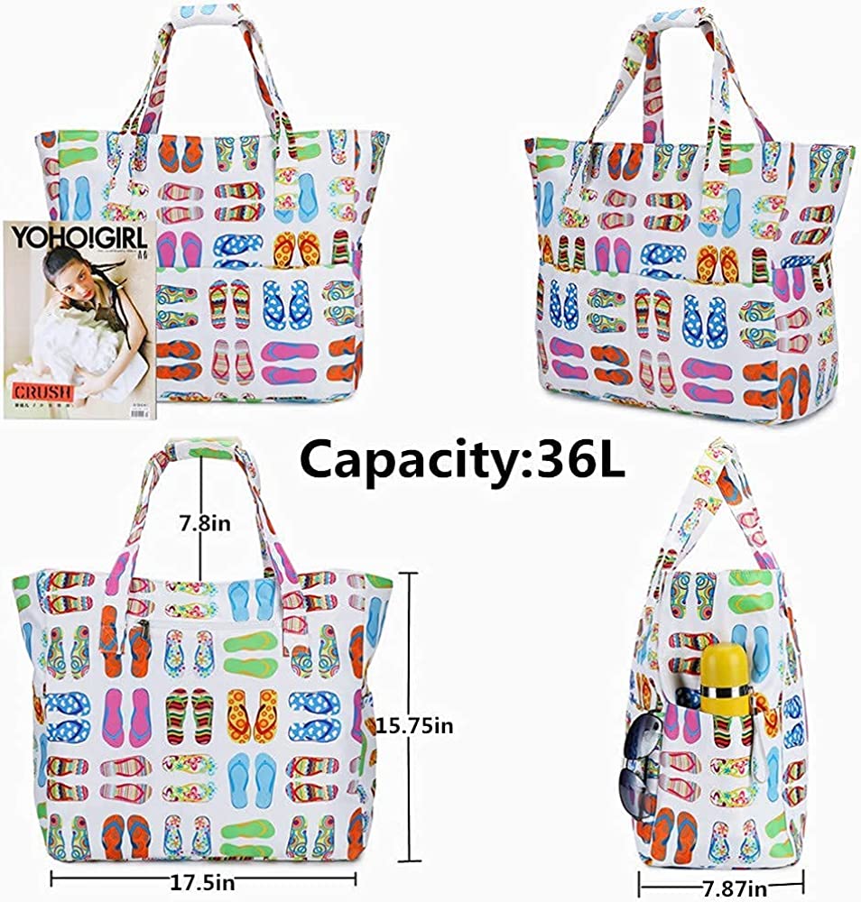 • Waterproof sandproof beach bag has tons of pockets and space for your towels, swim suits, flip flops, water bottles, glasses, sunblock, toys and any other things you'd like to take with you to the beach or pool, and interior pocket to place keys, your wallet or phone and other valuables