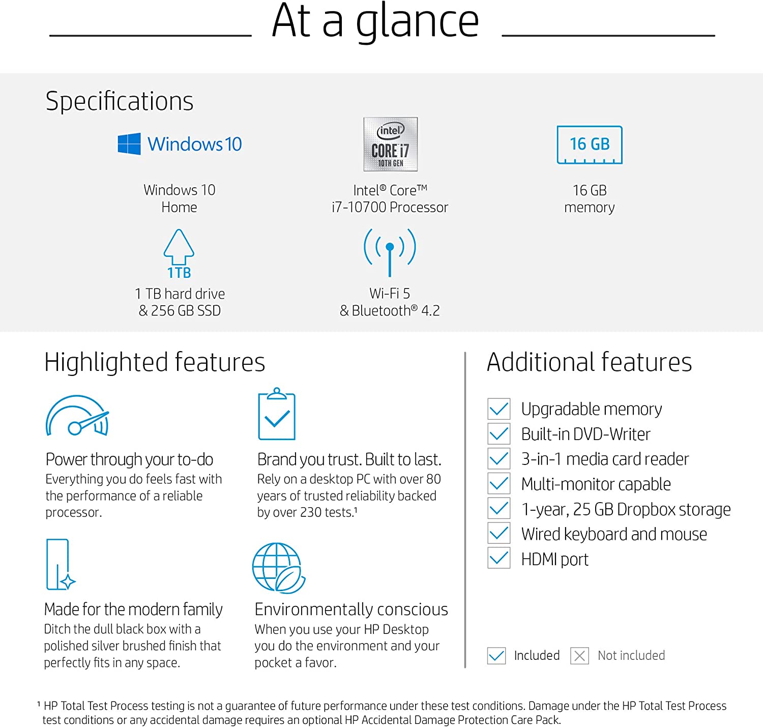 - PROCESSOR AND GRAPHICS: Enjoy an outstanding performance and immersive multimedia entertainment with 4K visuals with a 10th Generation Intel(R) Core(TM) i7-10700 Processor. You’ll see the difference in everything you do with excellent Intel(R) UHD Graphics 630 performance.