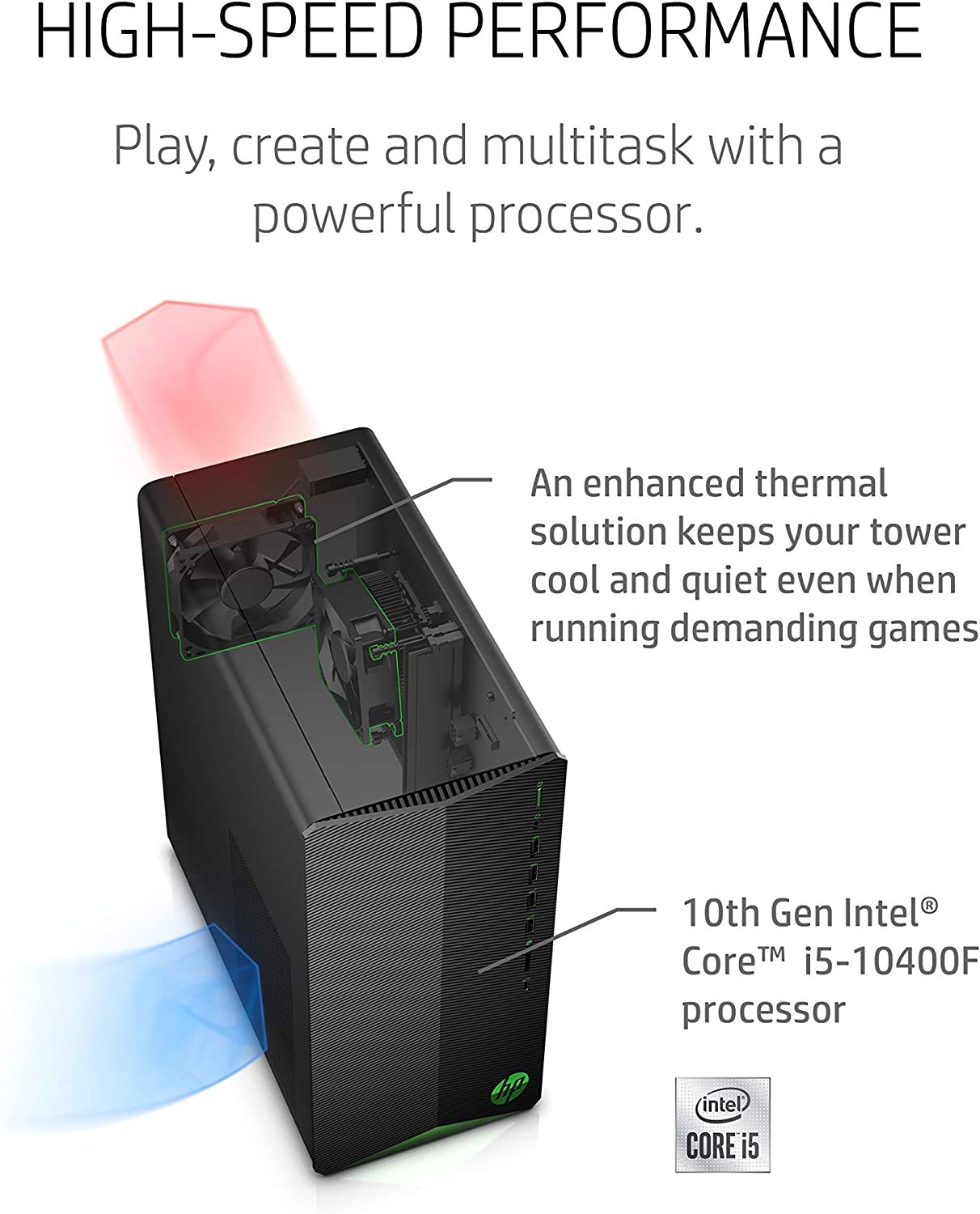 - 4K READY – Outstanding performance and immersive multimedia entertainment with 4K visuals courtesy of the 10th Generation Intel Core i5-10400F processor