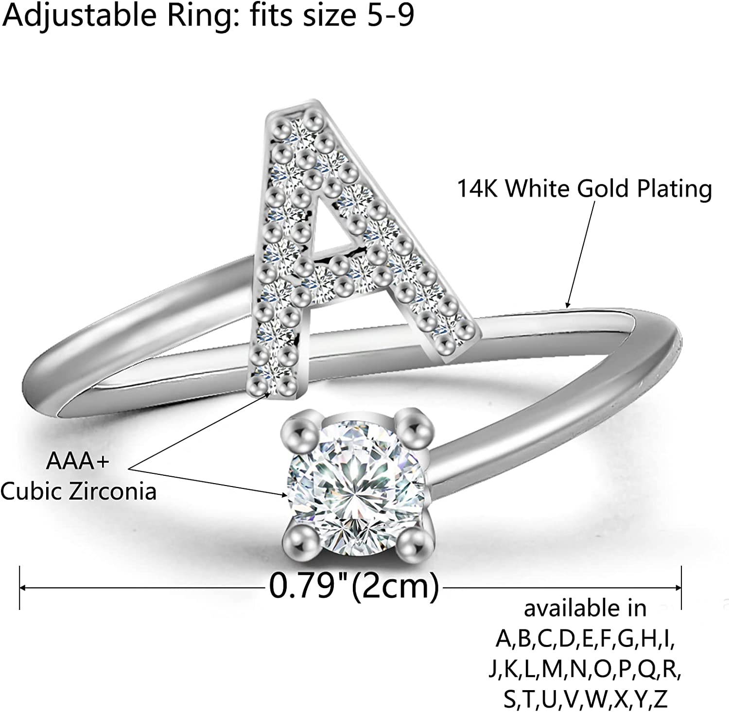 - CUTE INITIAL RING: This initial letter ring was designed with initials A-Z. 26 letters cover everyone's name, each letter has a special meaning for you, your lover's initials, daughter's initials, son's initials, perfect rings for teen girls, teens, daughter, mom, mother, bride, bridesmaid or best friends gifts.
