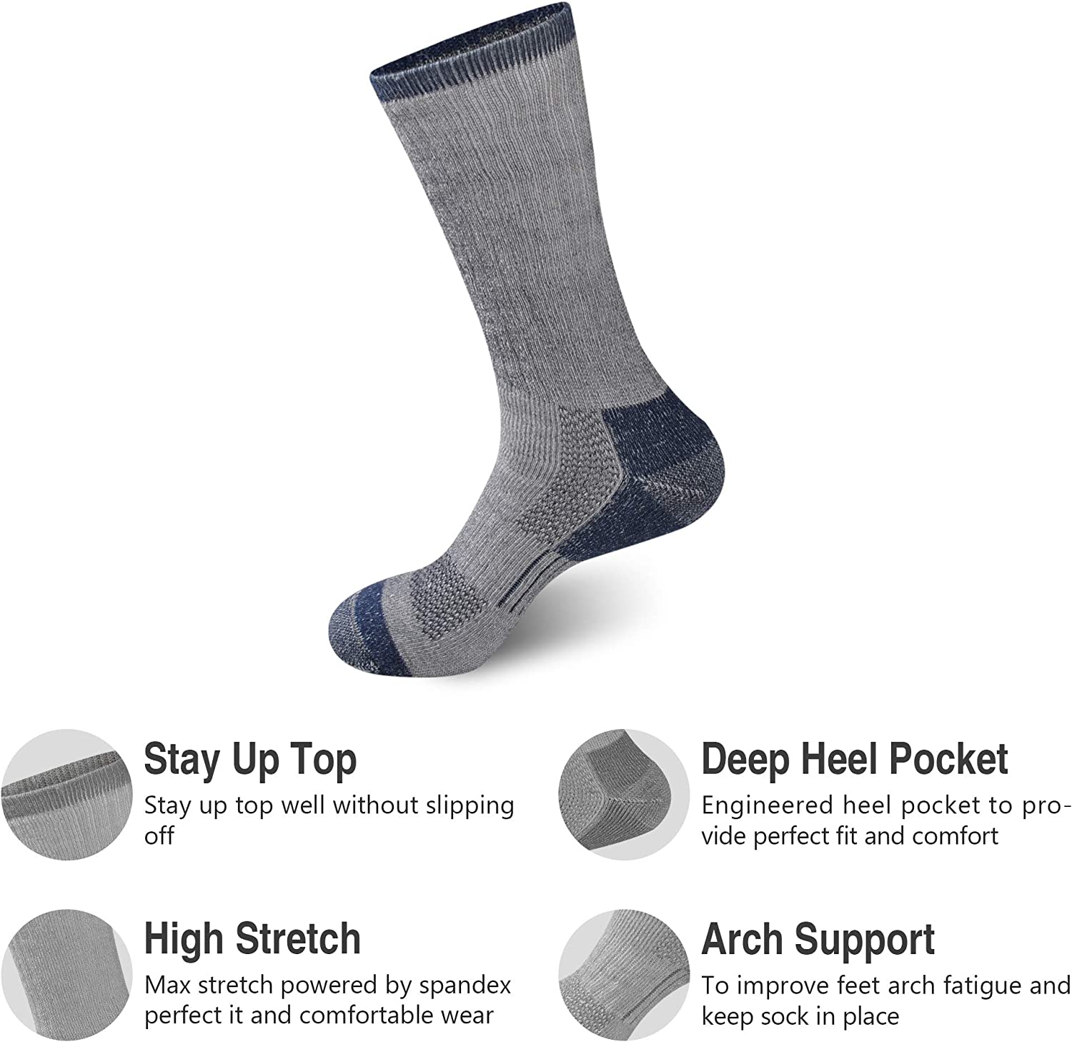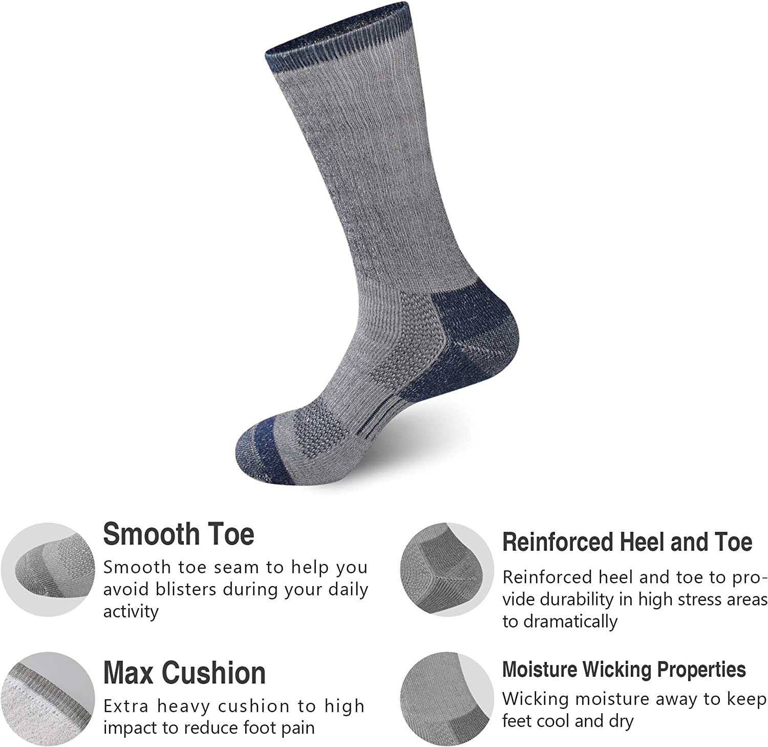 GKX Men's Merino Wool Moisture Wicking Outdoor Hiking Heavy Duty Work Cushion Crew Socks