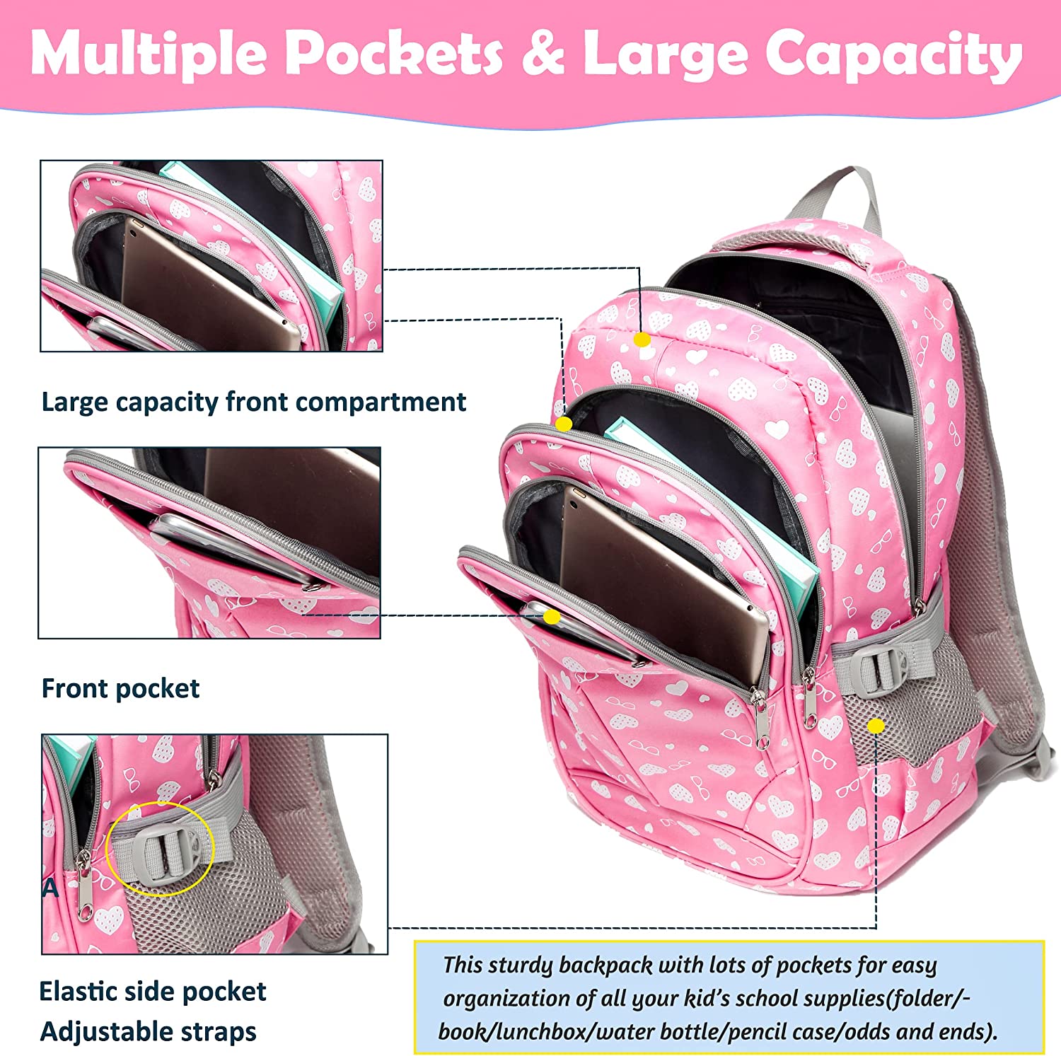 ?【 A PERFECT GIFT FOR KIDS 】--We are always very demanding about kids gifts —no only have exclusive collection of backpacks in trendy colors — pink and rose red,purple, but also protects your kid's favorite items from dust, shocks, bumps, scrapes and scratches & spills. This girls bookbag is prefect as a gifts for toddler at christmas, valetine's day, or birthday.