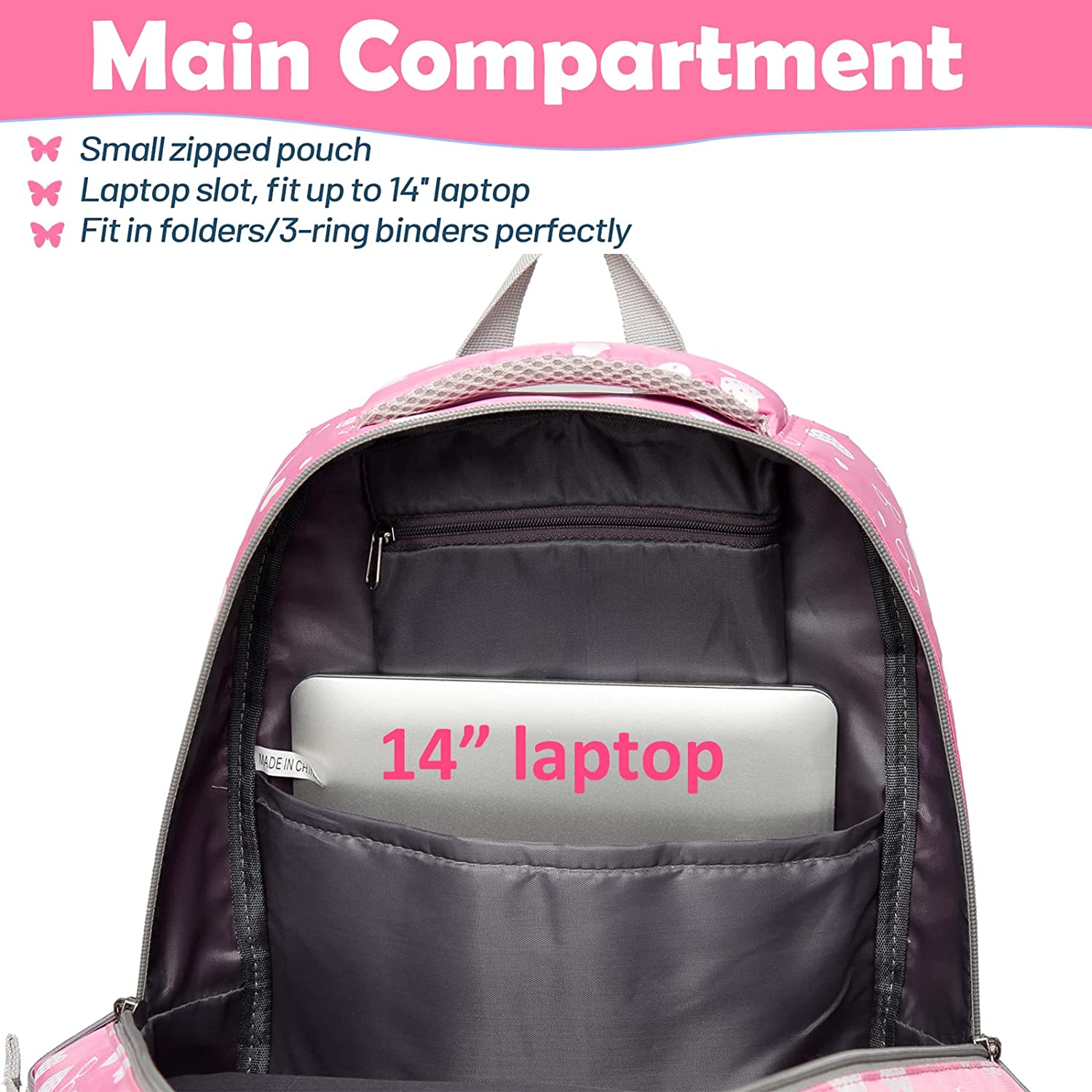 ? 【 APPROXIMATE DIMENSIONS & LIGHTWEIGHT 】-- This girls backpack Dimension: 17"H X 12"W X 6"D. A lightweight and durable daypack that goes from school to fun as quickly as you do with the comfortable straight-cut padded shoulder straps, padded back panel, and a quick grab web haul handle .