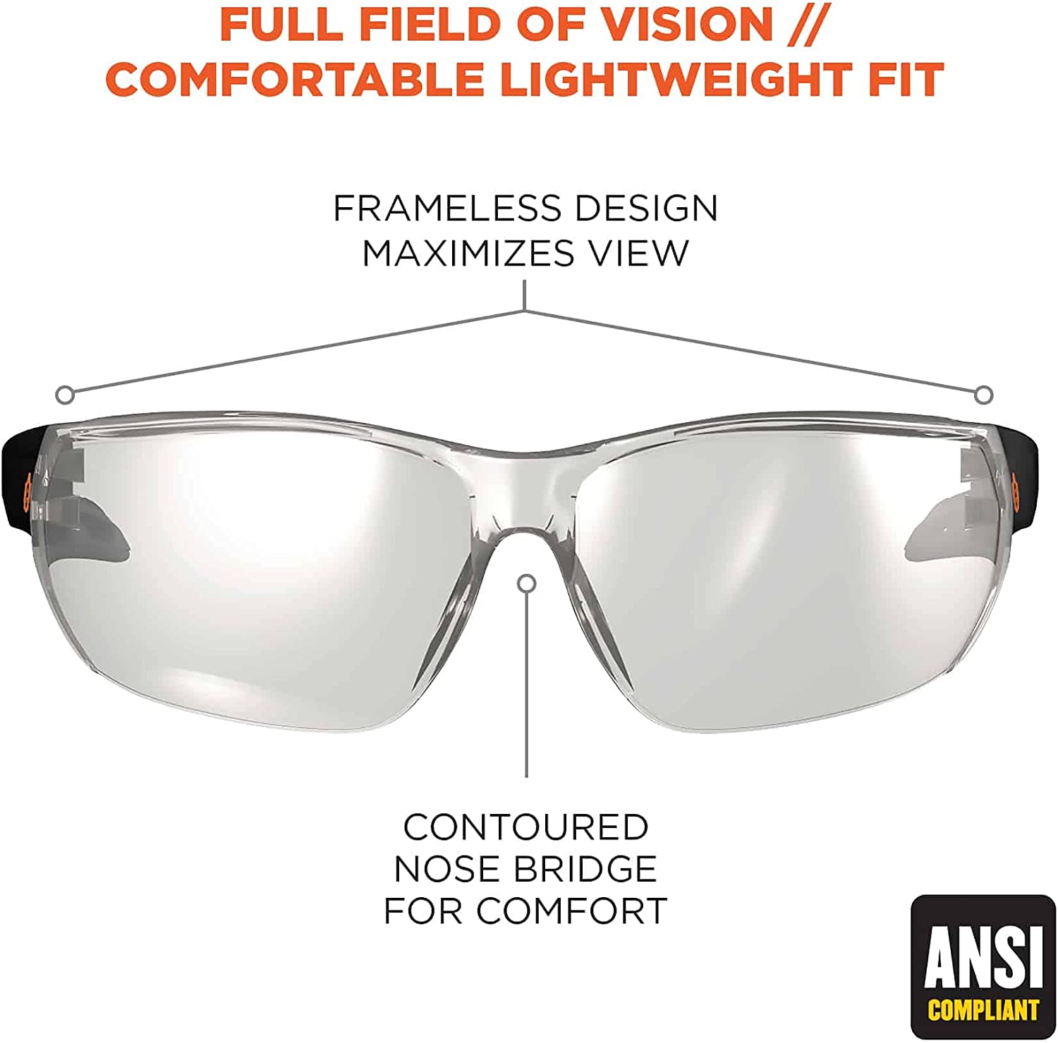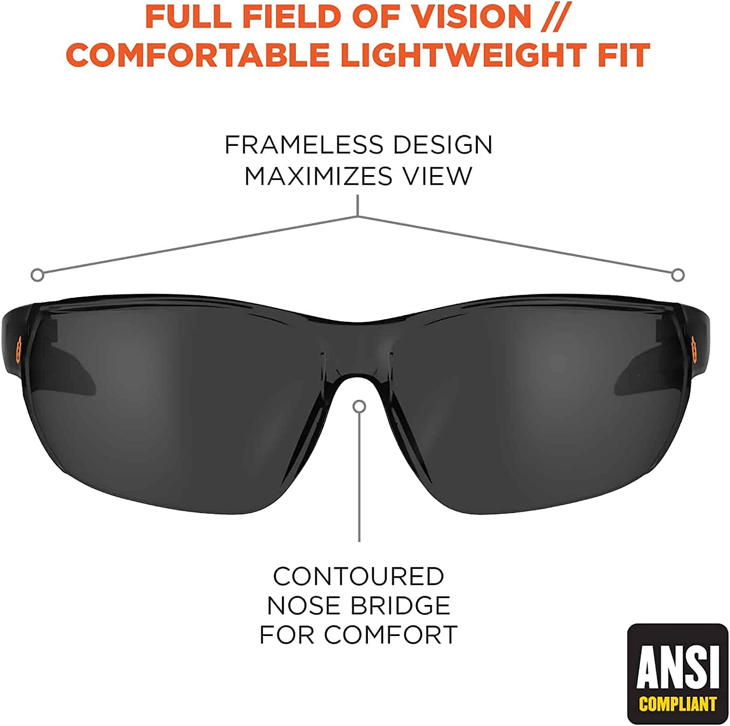 Ergodyne Skullerz VALI Frameless Safety Glasses, Lightweight, ANSI z87.1