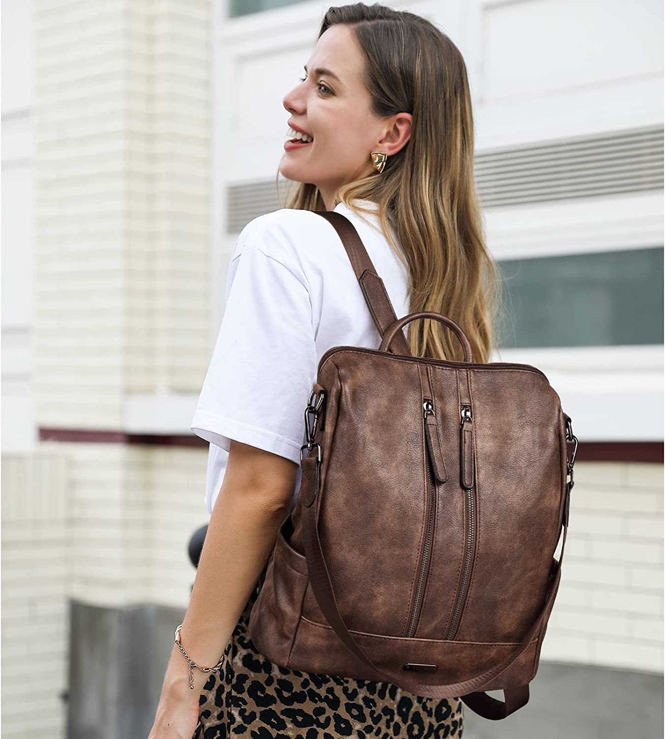 CLUCI Leather Backpack Purse for Women Convertible Large Travel Ladies Designer Fashion Casual College Shoulder Bag