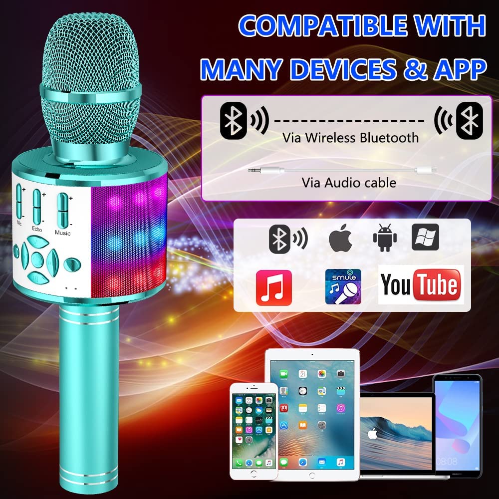Amazmic Kids Karaoke Microphone Machine Toy Bluetooth Microphone Portable Wireless Karaoke Machine Handheld with LED Lights, Gift for Children Adults Birthday Party, Home KTV(Blue)