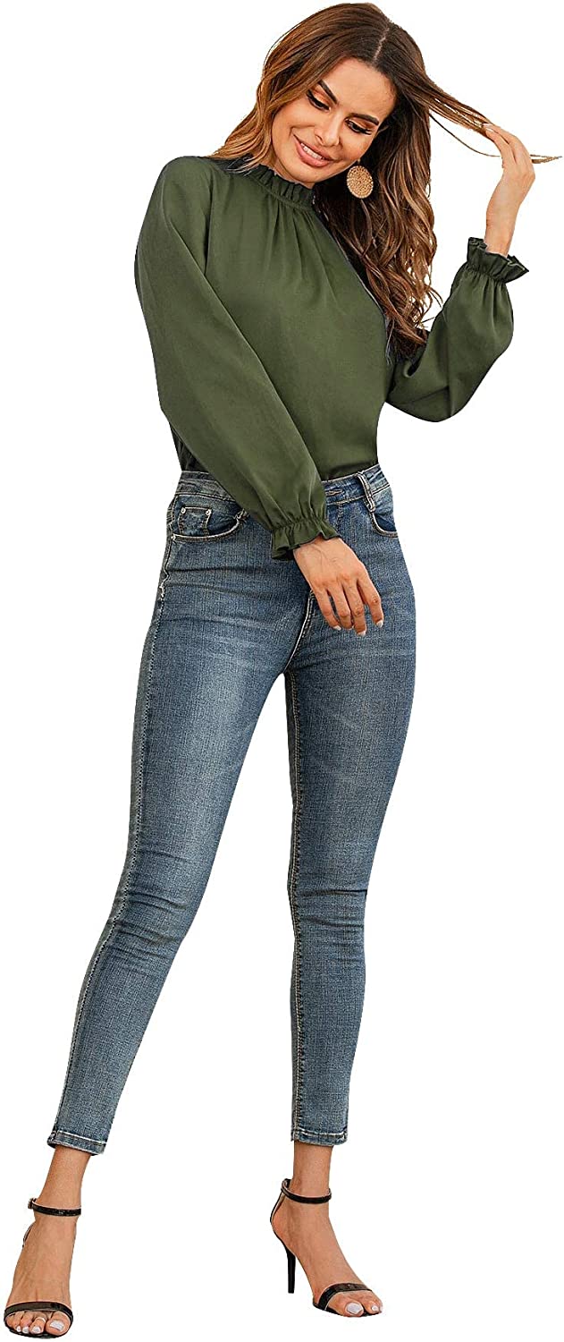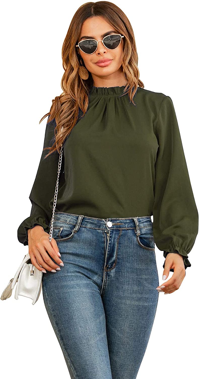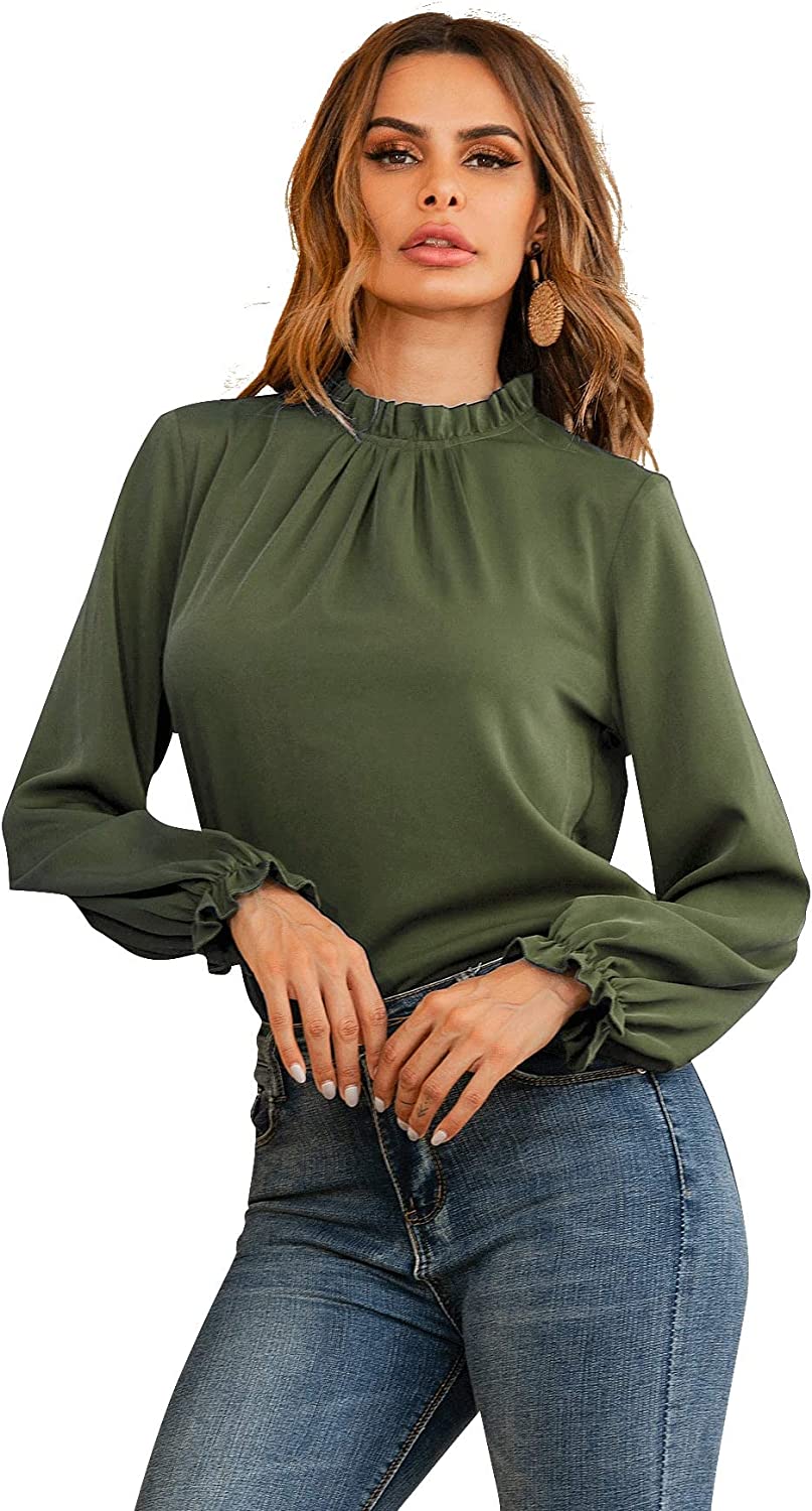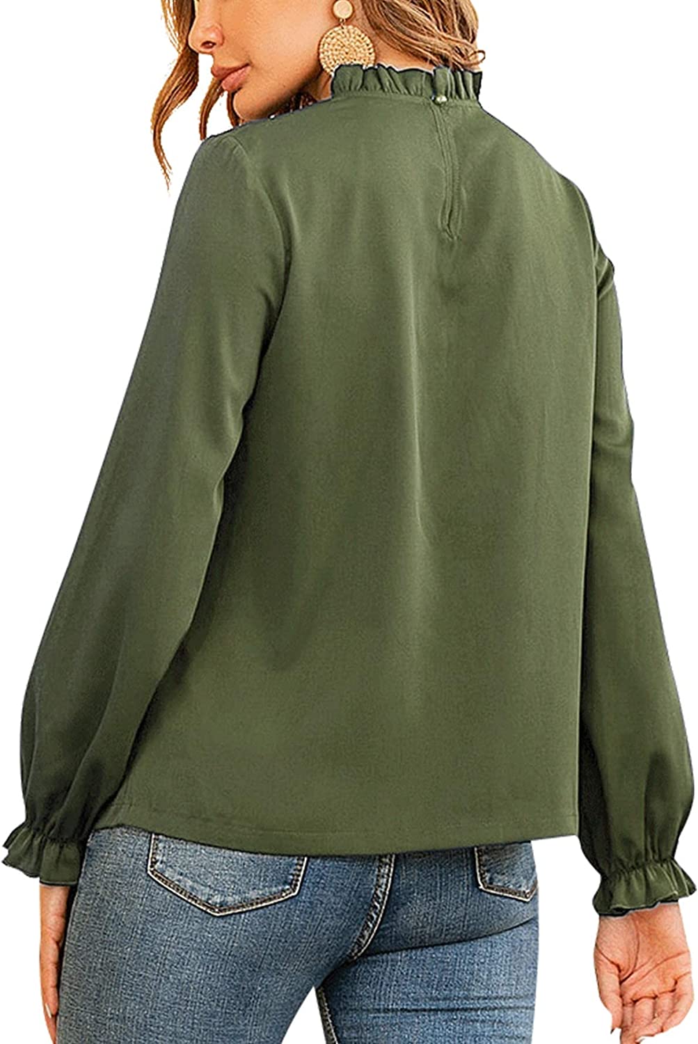 LYANER Women's Frill Mock Neck Flounce Long Sleeve Solid Blouse Office Shirt Top