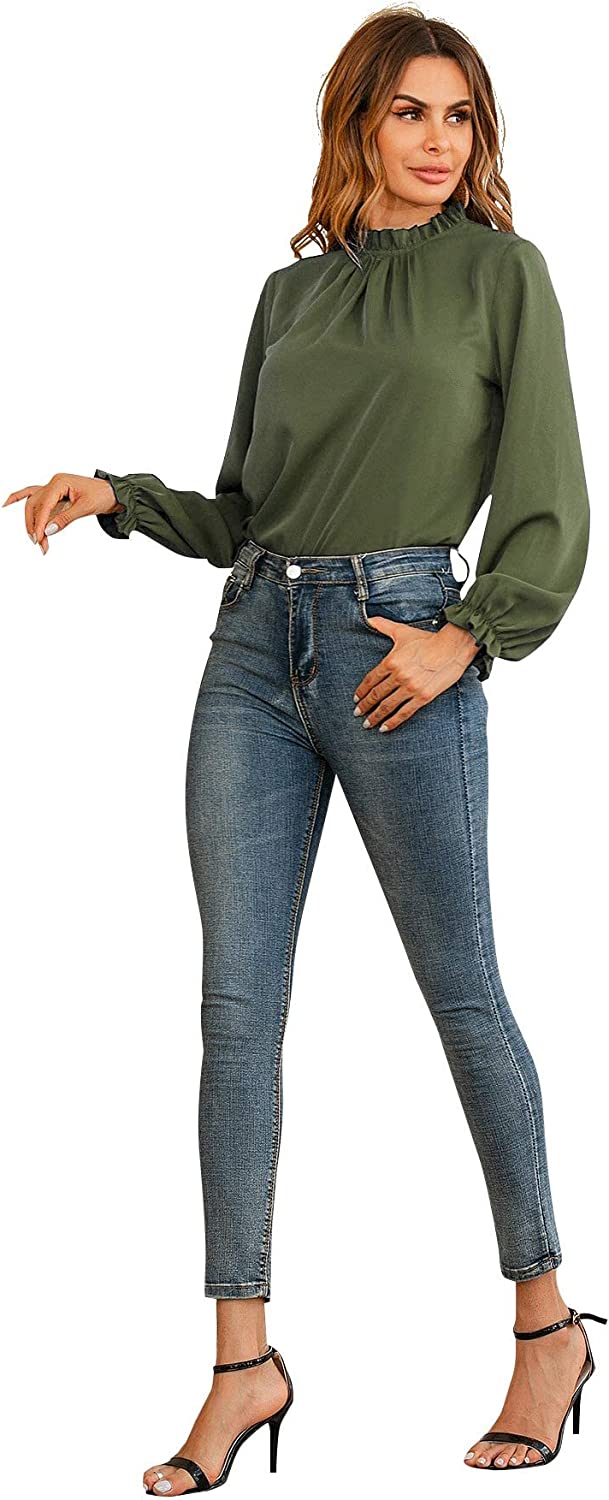 • Mock neck flounce sleeve blouse top for spring and winter. The top is not only suitable for your casual daily wear but also perfect as a wear to work/office/business wear.
